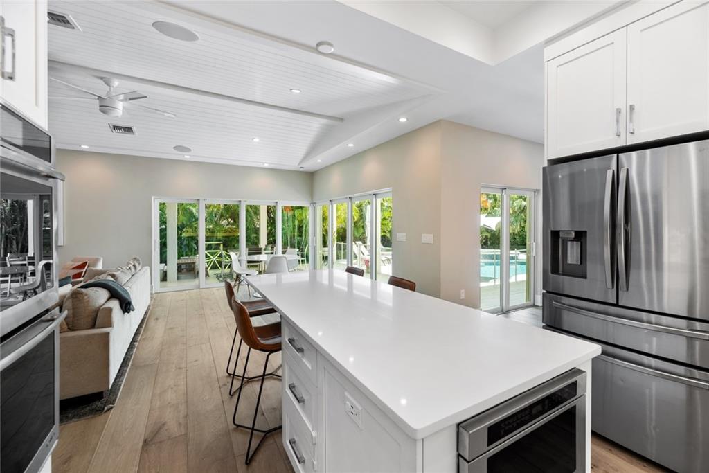 Newer luxurious Coastal Contemporary residence in private gated Harbor Beach. Located in a quiet cul-de-sac walking distance to the neighborhood deep water Marina and exclusive Surf Club on the blue Atlantic Ocean. Perfect for entertaining with its open, flowing and sun filled interior. Resort-style outdoor living and entertainment spaces includes ca 1,700 sf of exterior covered patio, with high end summer kitchen, dining area and lounge spaces. Complete master wing with sitting area and large dual closets & luxury hotel style spa-bath. 3 additional bedrooms adjoining their own private living space. Spacious workable laundry room, and an oversized professionally built out 2 car garage with an excess of storage. This home checks all the boxes for the sought after South Florida lifestyle!