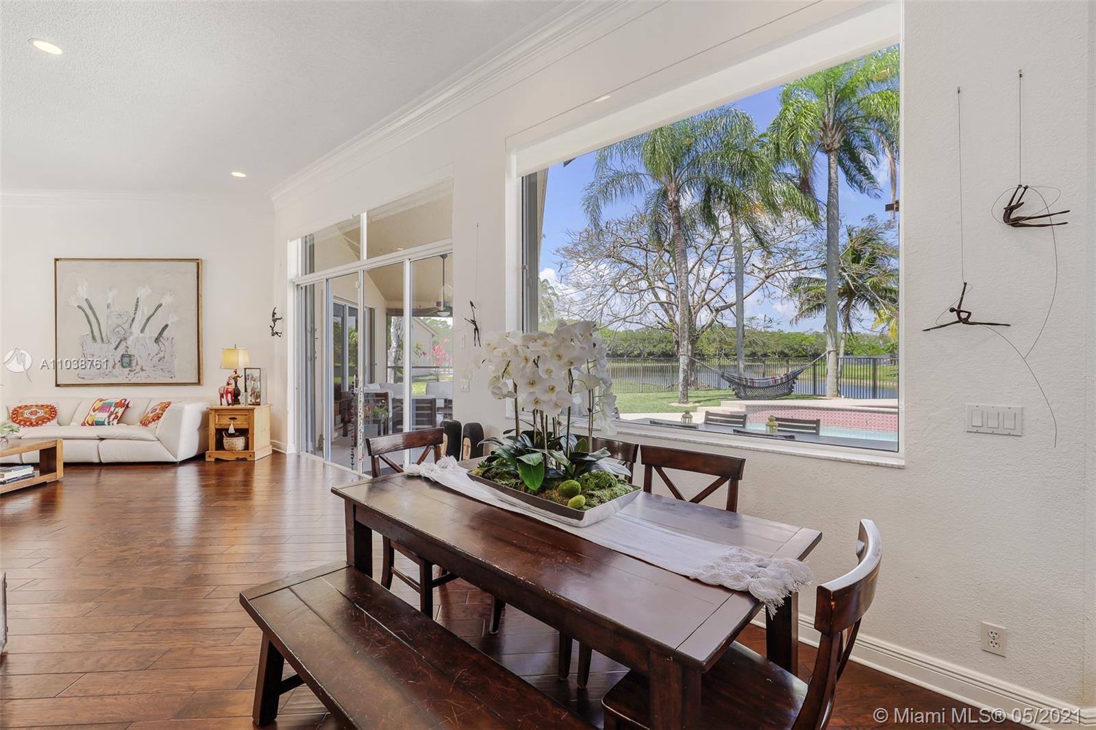 NEW ROOF. Welcome to this spacious and bright waterfront home. Premium pie shape lot and unobstructed waterview. 4 bedroom, 3 bathdroom. On a cul-de-sac in Weston Hills Country Club. Enjoy amazing views from kitchen and social areas. Engineered wood floors, SS appliances, granite countertops. Cabana bath nicely remodeled. Master bathroom with separate dual sinks, walk-in shower and tub. 3 car garage, open floor plan with volume ceilings, accordion shutters. Weston Hills is a picture perfect community with easy access of both I-75 and I-595.