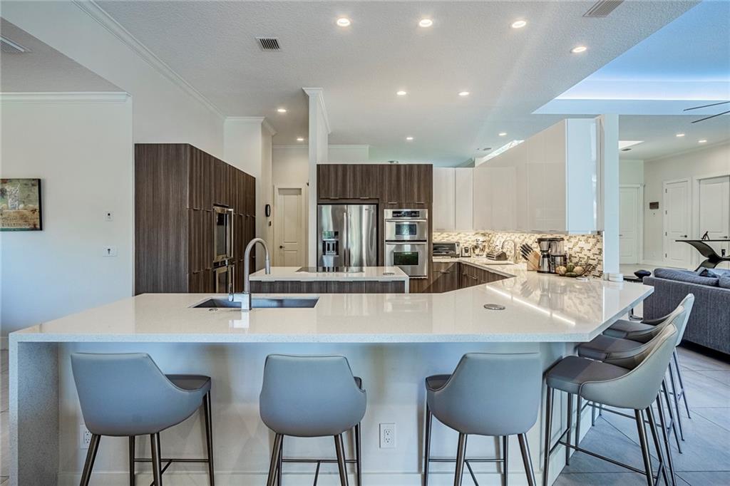 On one of the best waterfront lots at The Hamlet, a private enclave of 35 estate-sized homes, attention to detail in this designer property is clear. This 4,526-foot pool home offers 5 beds, 4 full & 2 half baths, 3-car garage with 3rd bay used as gym/sauna. Chef's kitchen boasts stainless appliances, European cabinets and gleaming quartz countertops. Large format, imported porcelain flooring throughout. Oversized master features handsome tray ceiling, his/hers walk-in closets, and spa-like en suite bath. Smart home tech controls 3-zone A/C, lighting, sound, pool and alarm/cameras; whole-home generator helps keep you connected. Your search is over!