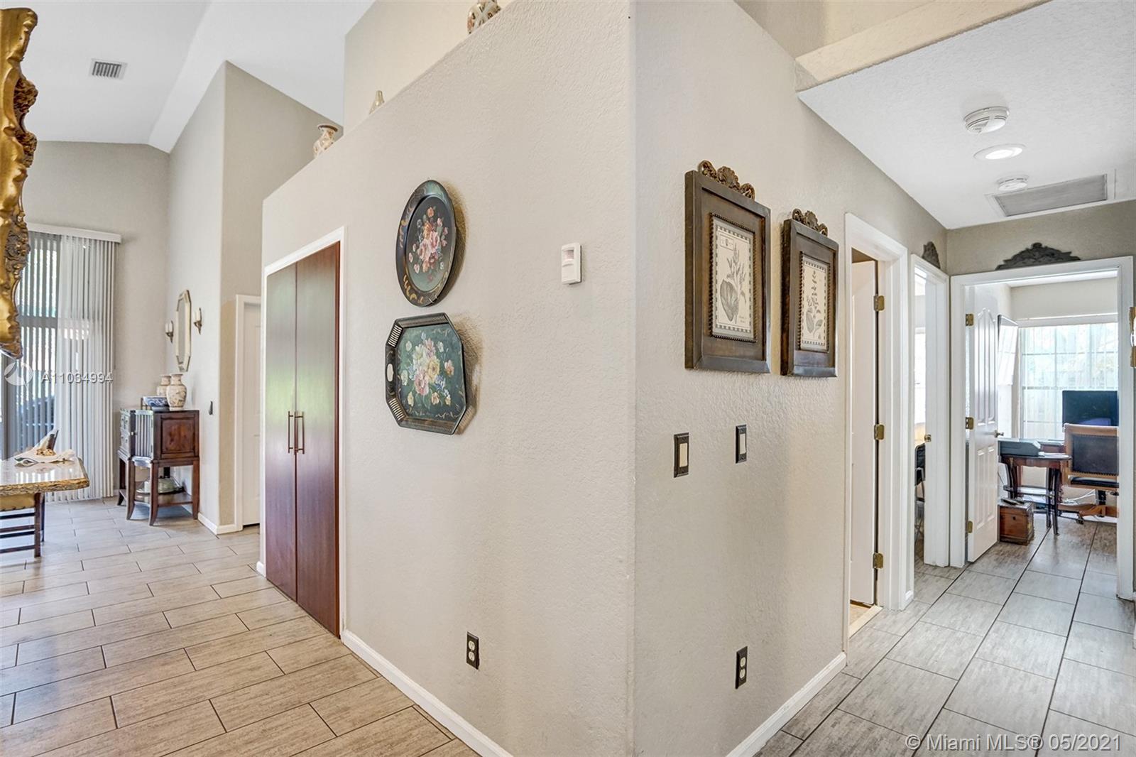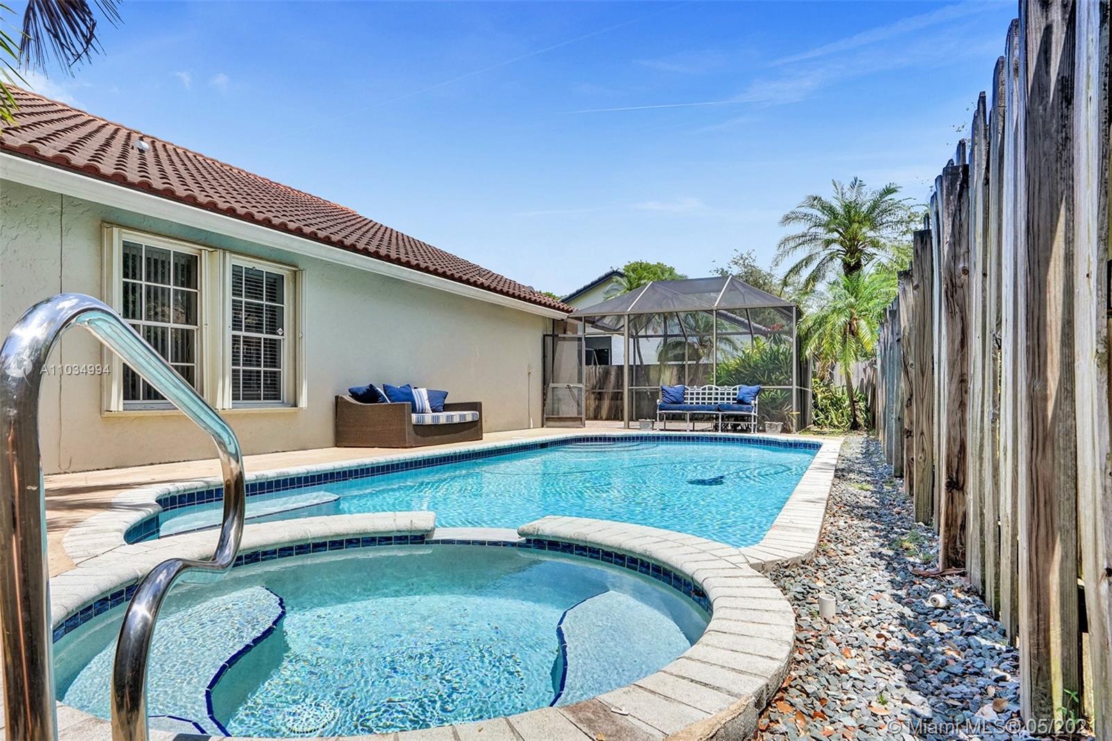 Beautifully remodeled and maintained home situated on a nice corner lot with a pool/jacuzzi. Home boasts an updated kitchen & bathrooms to the high vaulted ceilings and more. From the minute you walk in and throughout the tour you will feel like you found your next home. Split floor plan works out great for entertaining frailly and friends. There is a dining and living room area as well as a family room towards the back of the home leading out to the screened-in patio and separate pool area. Home has Hurricane protection. Community has all amenities one could want located at the clubhouse with pool, gym, tennis courts, basketball, walk/bike paths and more. Area is known for their Top schools as well as being centrally located to all shopping, restaurants, close to major highways and more.