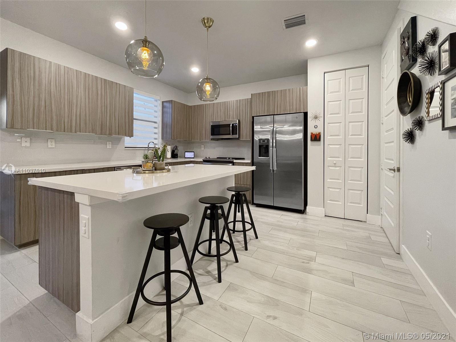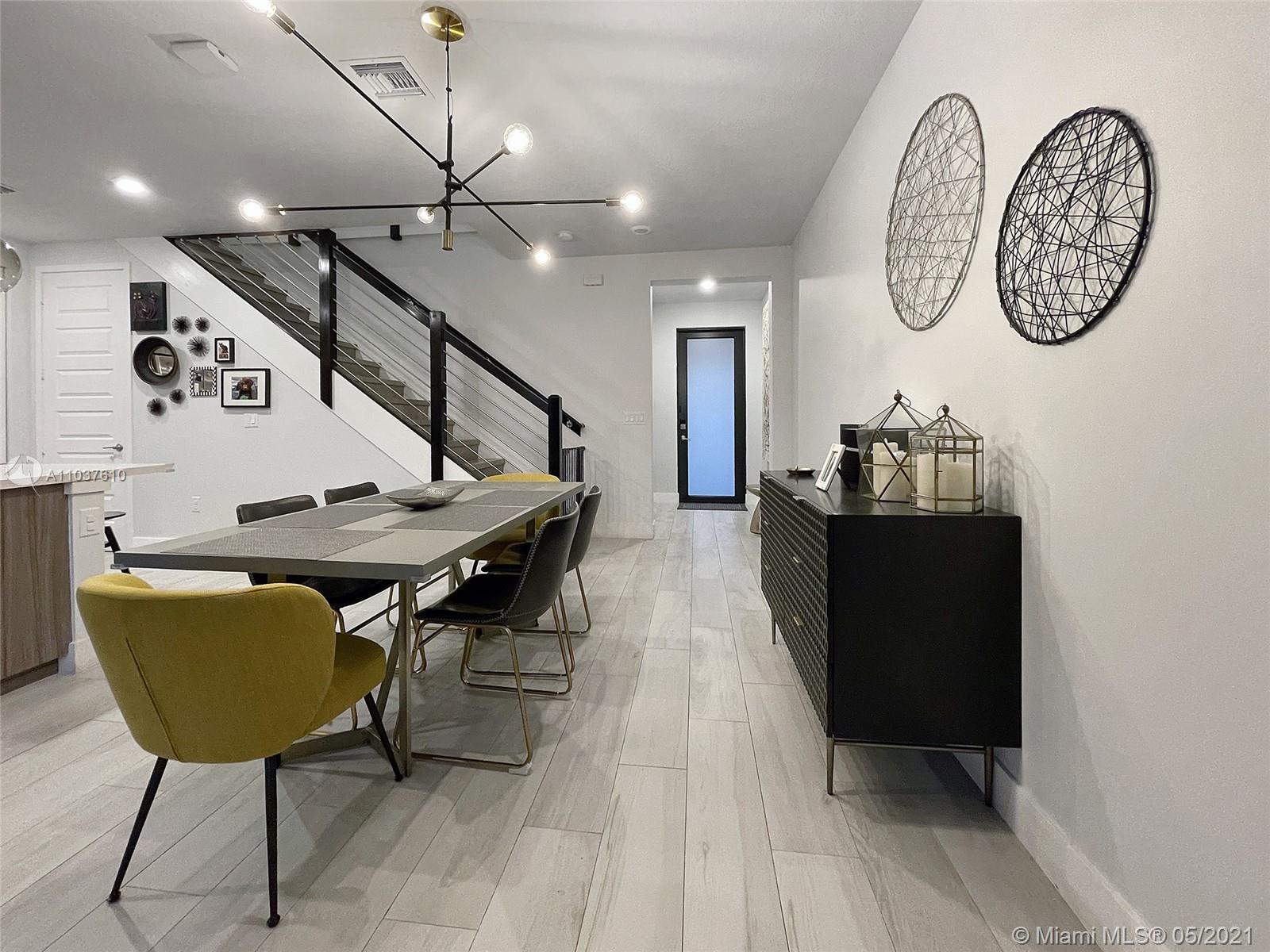 beautifully maintained townhome in the desired Summit at Park Central. Three bedrooms two full baths and one-half bath. Spanish tile throughout the first floor, laminate wood on stairs and second floor. Quartz countertop, Stainless Steel appliances, great pantry.Patio with pavers and artificial turf with 0 maintenance required - no grass to cut - Premium lot with no direct neighbors behind you!! Close to supermarkets, restaurants, shops, banks, schools, and airports. Included with the association you can enjoy the Grand Central Clubhouse with resort-like amenities, waterpark for the kids, amazing gym, sauna, playground for the kids, party room, billiard room, internet lounge, gathering room, with catering kitchen, tennis, soccer field, basketball courts, BBQ pavilion, huge pool and more!