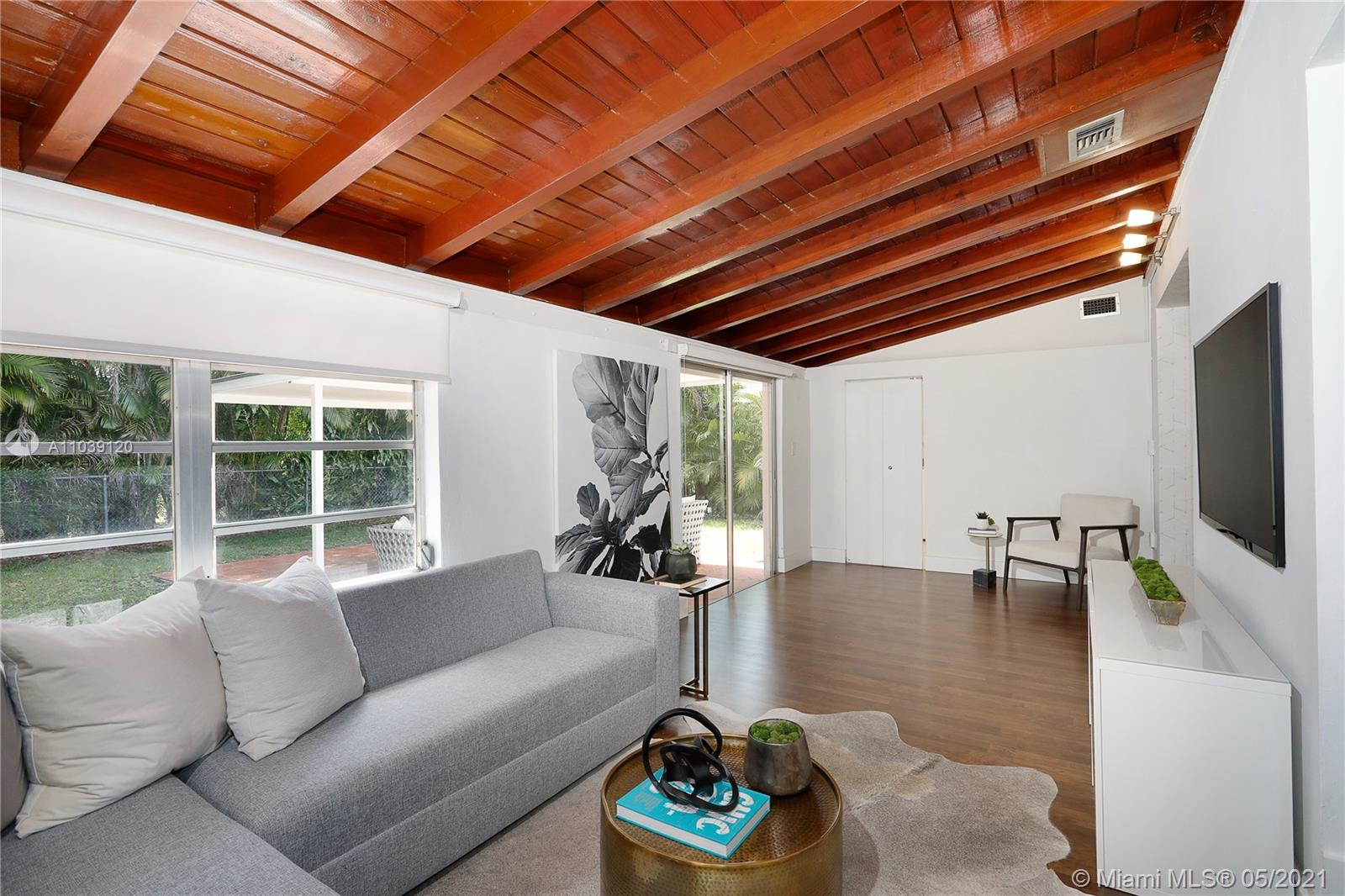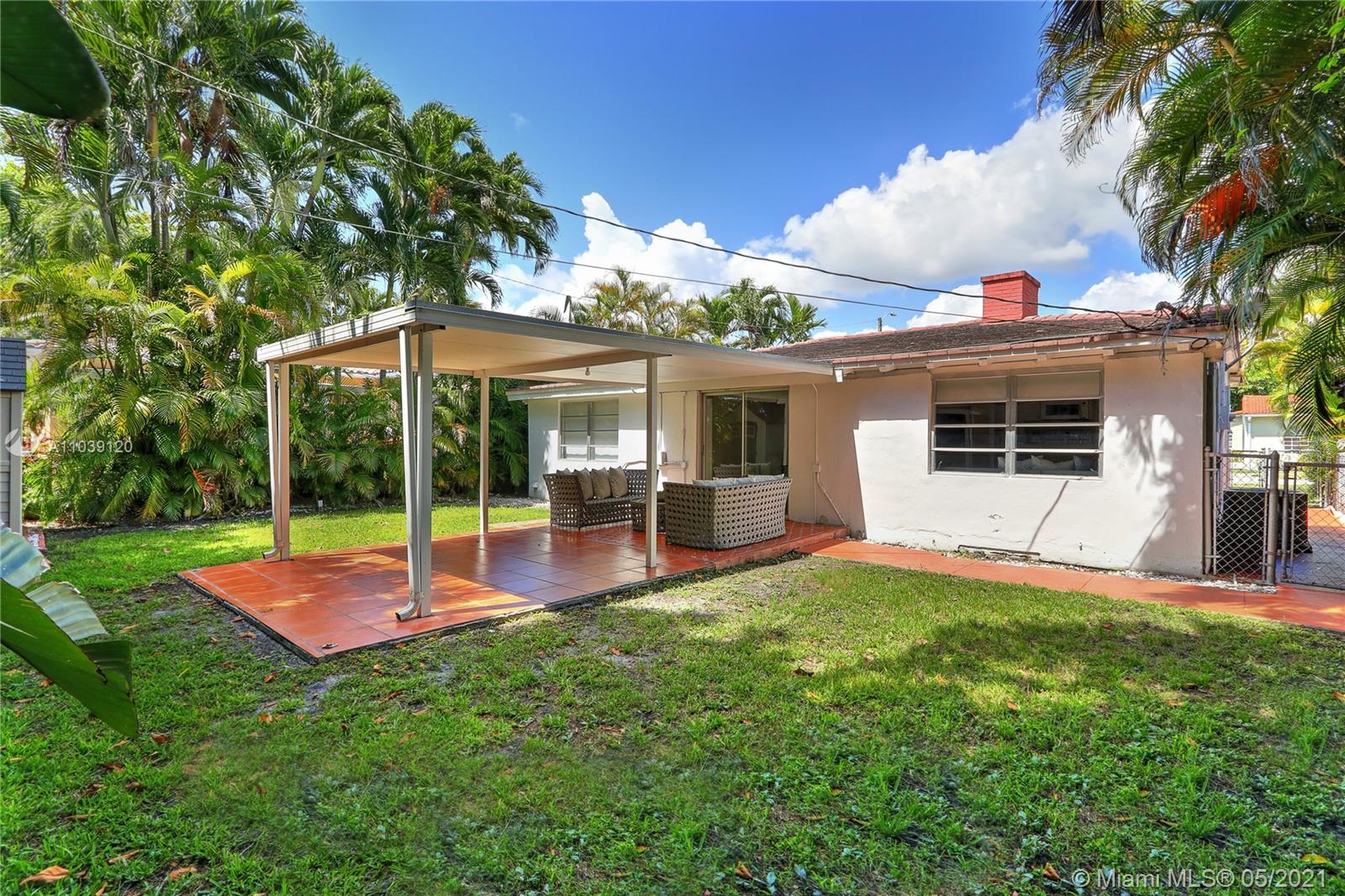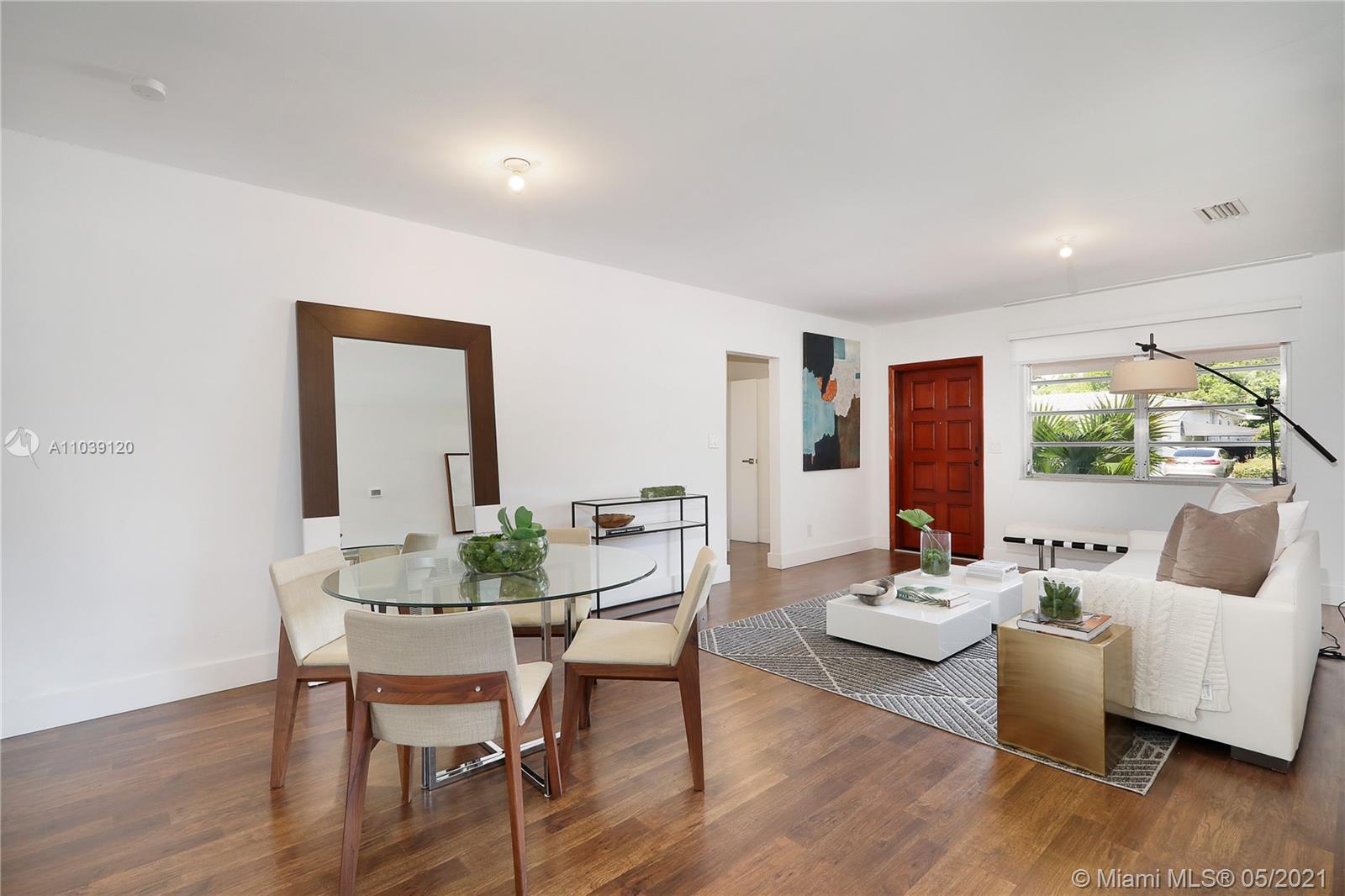 Charming cottage home on a quiet street in the North Gables. Sit back and relax in the lovely front covered porch overlooking the manicured front lawn. Inside the remodeled kitchen leads to an open concept living space with updated flooring, formal living room, dining room and separate indoor laundry area. A large family room which overlooks the fenced-in backyard extends to a covered patio, ideal for outdoor entertaining. The master bedroom easily accommodates a king-size bed and includes an ensuite bathroom. The second bedroom would make the perfect nursery, guest room or home office. Centrally located this home is close to Miracle Mile, Restaurants, Granada Golf Course, Venetian Pool and Miami International Airport. Seller is highly motivated and will consider all serious offers!