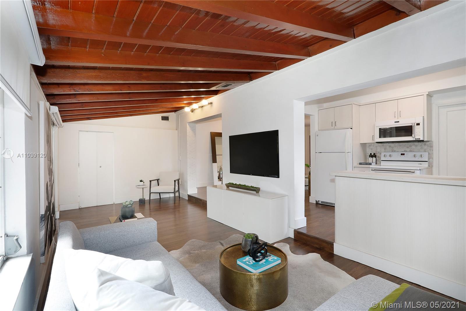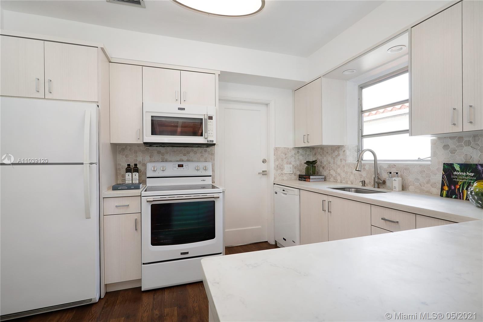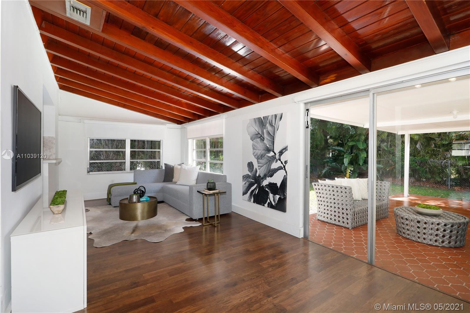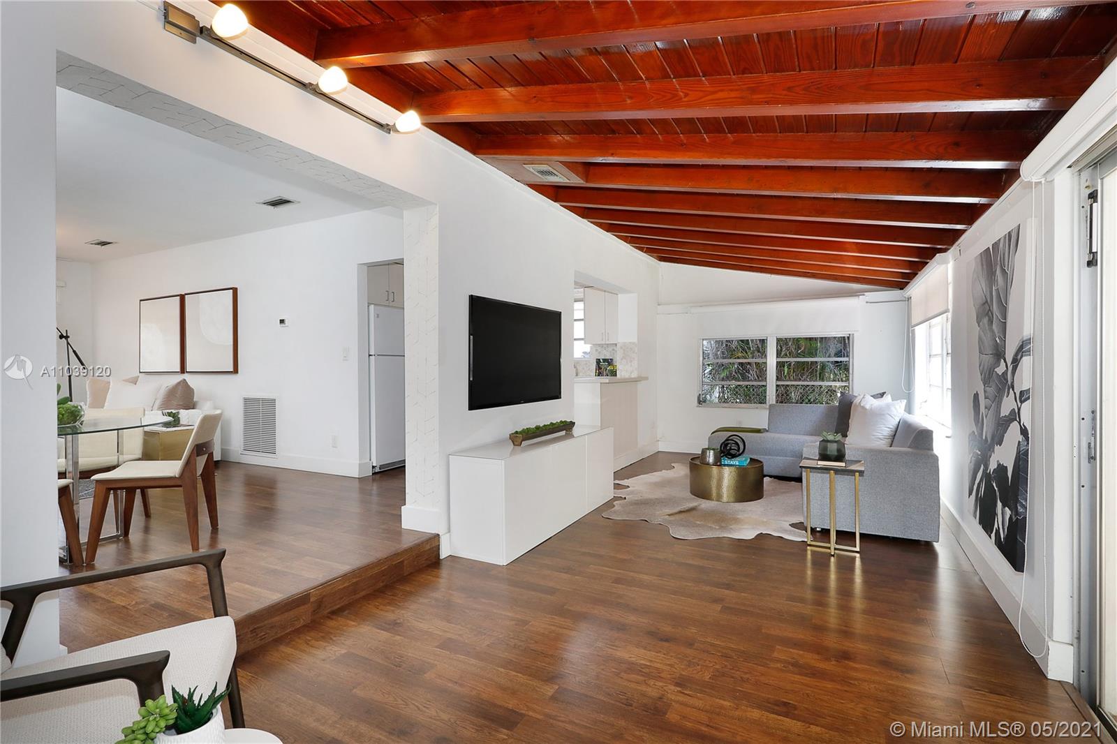 Charming cottage home on a quiet street in the North Gables. Sit back and relax in the lovely front covered porch overlooking the manicured front lawn. Inside the remodeled kitchen leads to an open concept living space with updated flooring, formal living room, dining room and separate indoor laundry area. A large family room which overlooks the fenced-in backyard extends to a covered patio, ideal for outdoor entertaining. The master bedroom easily accommodates a king-size bed and includes an ensuite bathroom. The second bedroom would make the perfect nursery, guest room or home office. Centrally located this home is close to Miracle Mile, Restaurants, Granada Golf Course, Venetian Pool and Miami International Airport. Seller is highly motivated and will consider all serious offers!