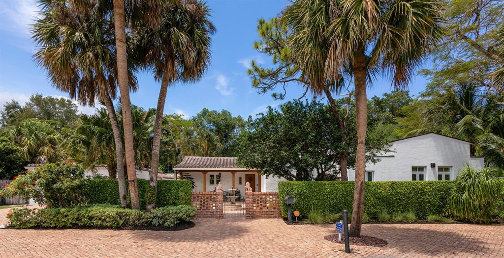 Bright and warmly inviting, this recently renovated comfortable single-story historic residence consists of 3,636+/- living square feet, five bedrooms, five and a-half baths including separate guest house. Adjacent the main foyer, the beautiful living room preserves its original wood-burning fireplace, Dade County pine floors, and Pecky Cypress ceiling. Across the Mexican quarry-tiled gallery is the formal dining room with Chicago brick floor and expansive arched windows overlooking the newly expanded pool patio and re-surfaced pool.