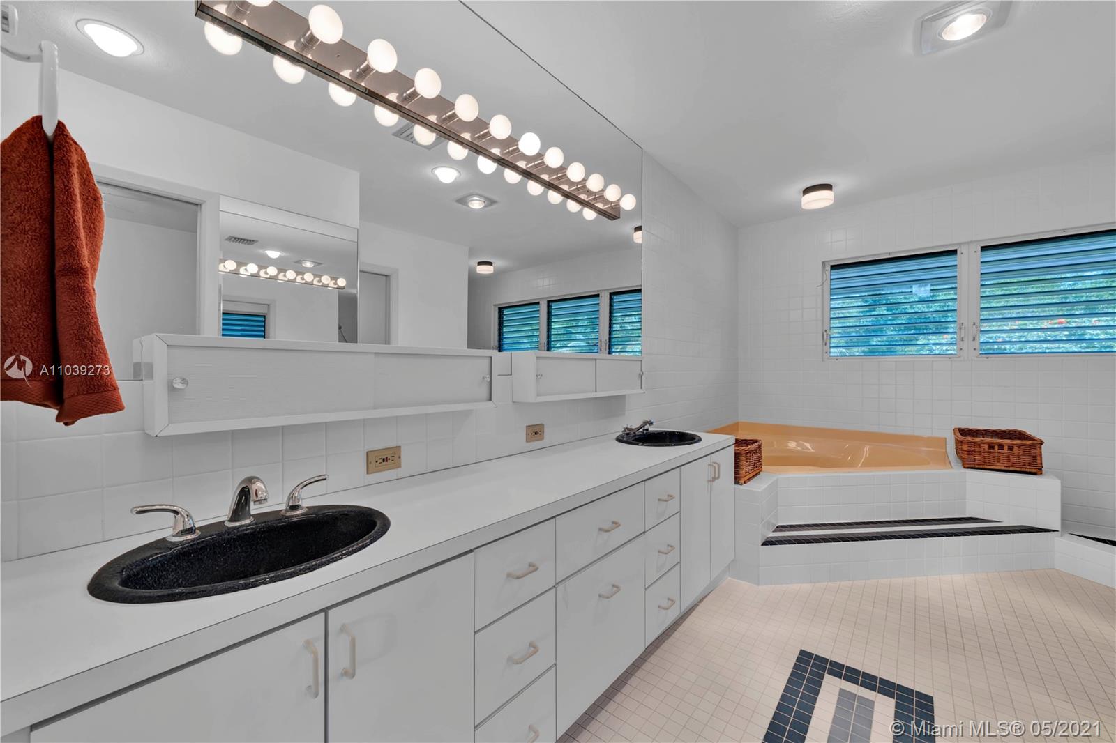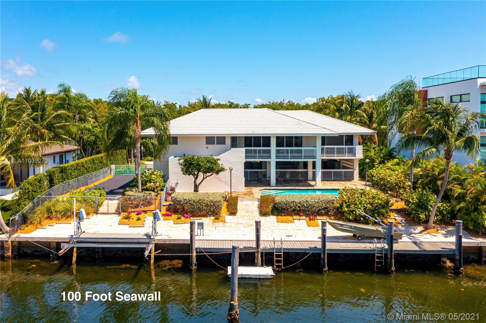 Welcome to the exclusive "Gables by the Sea" gated community featuring a 2 level Keys-style home with an elevation of 17' MSL as per the seller who is the original owner. Enjoy southeast breeze passing through the rear of home & upstairs master bedroom & living room areas. Interior home features 2 bedrooms, 2 bathrooms, living room & a great family room areas. Multiple views of the water from the property overseeing the 100' seawall constructed in 1989 with reinforced cap, panels, tiebacks & A 50' boat dock with a 10,500 lbs boatlift added in 2001. Enjoy endless relaxation from the 2nd floor covered open terrace admiring the pool & water. The property sits 1,500 feet/+- from the open bay areas. Truly one of the best situated homes available inside "Gables by the Sea".
