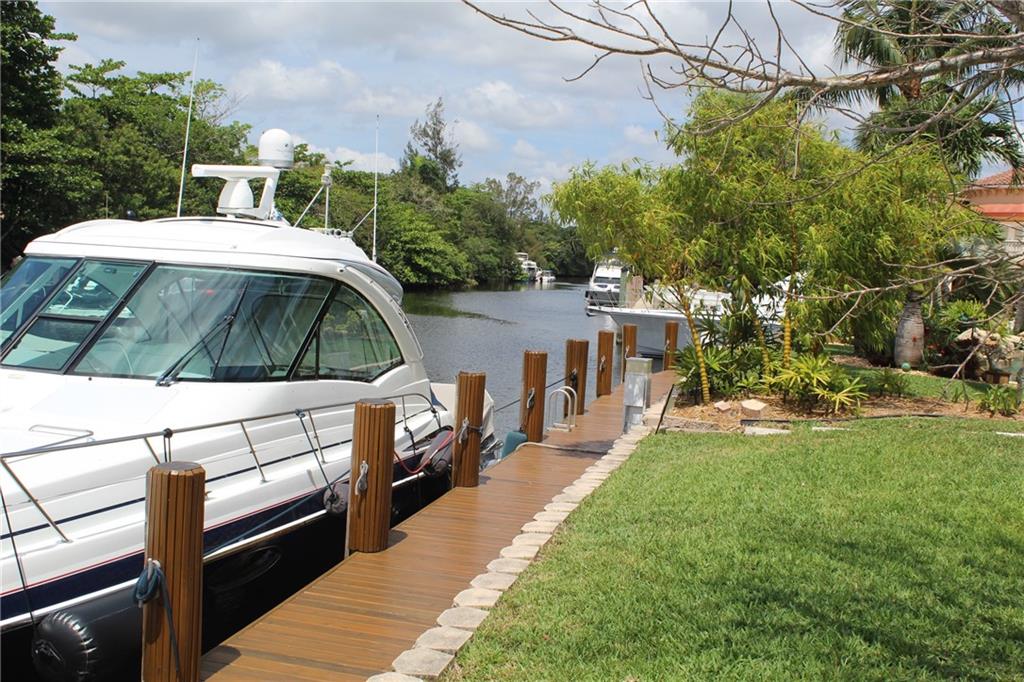 Paradise awaits! Premier point lot in Lauderdale Isles on cul-de-sac w/Apx 160'wff. Upgraded elevation, portico entry, koi pond, 2-car garage with attic/stairs, amazing Ldscpg w/separate H20 meter, underground electric, auto sprinklers, paver driveway, lg patio, custom lagoon style pool w/waterfalls. Apx 143' of dock with 3 elec/water trees, 12x22 upper deck, attached gazebo & util shed, exterior lighting, etc. Interior substantially upgraded. Rear master suite w/luxurious ensuite bathroom, additional bonus rm/ofc and amazing river views. Watch boats go by from this luxurious estate with sweeping 180 degree views of river, while providing privacy and tranquility. Minutes away from the FLL Int'l airport, downtown, schools, shopping, beaches and direct ocean access by boat via the New River.