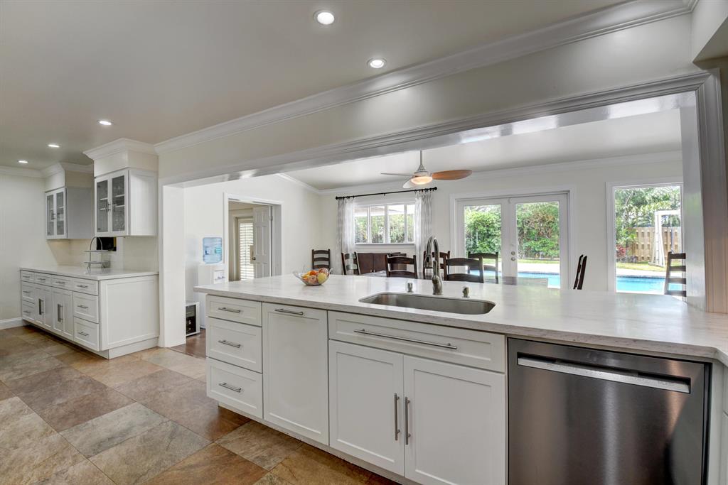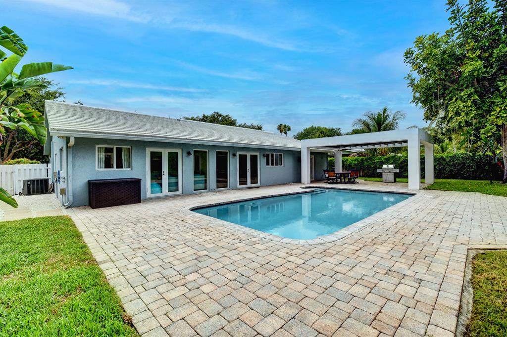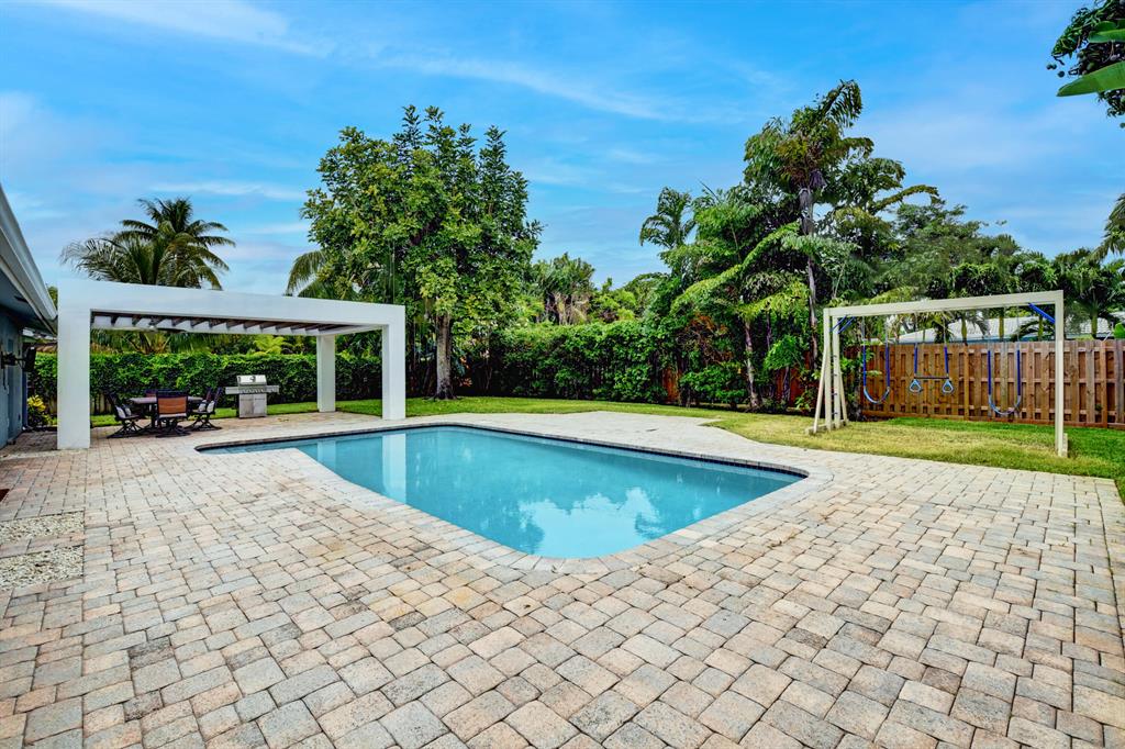 Charming sparkling home situated on one of the nicest tree lined streets in Palm Beach Farms. Large lot with oversized circular, paved driveway. Grand mature trees and landscaping. Backyard having pool (heated), swing area, and custom pergola and pavers. Interior of the property has been updated with attention to details. Beautiful flooring, kitchen with stylish white cabinets, HALO added to AC. Built ins. Attractive updated bathrooms. All impact windows and French doors. Family room off kitchen plus 2nd FR can be used as 5th bedroom, den, office, playroom. Split floor plan. Lots of windows looking out to excellent back yard. Great location. Walk to Pine Breeze Park one block, bike to beach, close to shopping, Mizner Park, expressways.