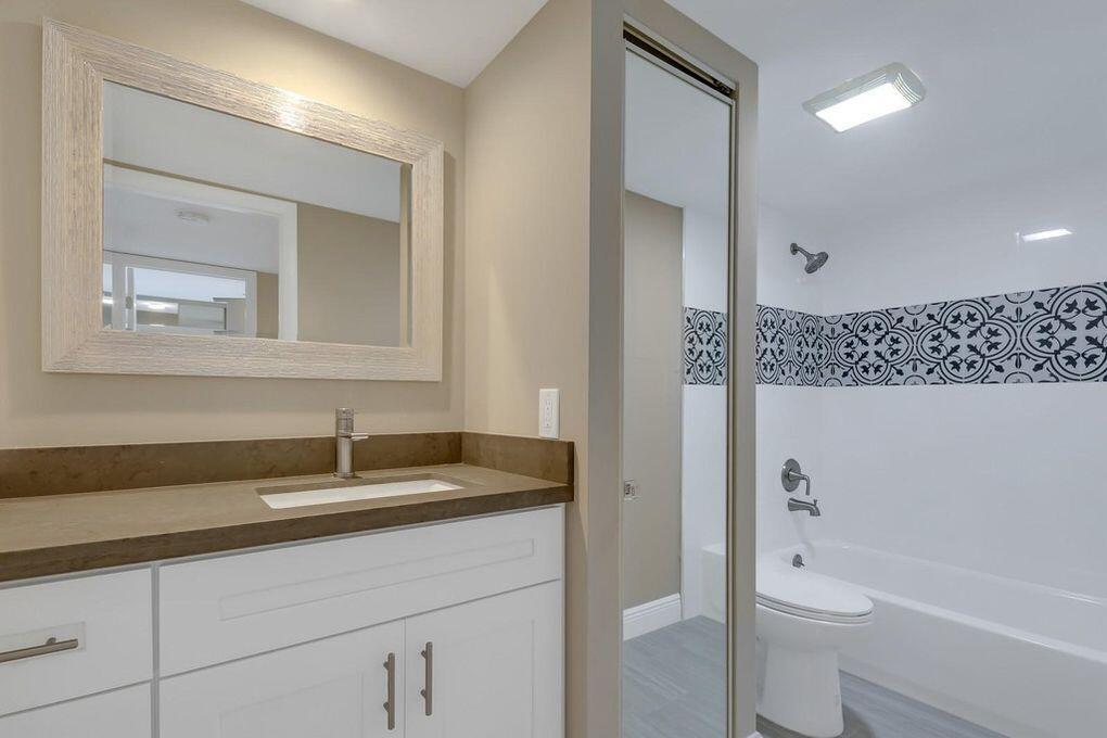Stunning remodeled townhouse with designer touches throughout. Wide plank wood look tile floors throughout with 5 1/4 baseboards and fully upgraded & updated kitchen with a newer stainless steel appliances, shaker style white cabinets with soft closing doors and drawers and beautiful dark grey quartz countertops. Kitchen & baths cabinets & countertops match throughout the home. Both main bathrooms have been renovated with the latest high end look as has the half bath downstairs. A/C 2016 and maintained twice a year. New accordion hurricane shutters installed 2019. Water Heater, washer and dryer also 2019. Water and basic cable included in HOA. Community also includes tennis, basketball, pools and 2 parks. Centrally located to shopping, malls, dining, entertainment and much much more.