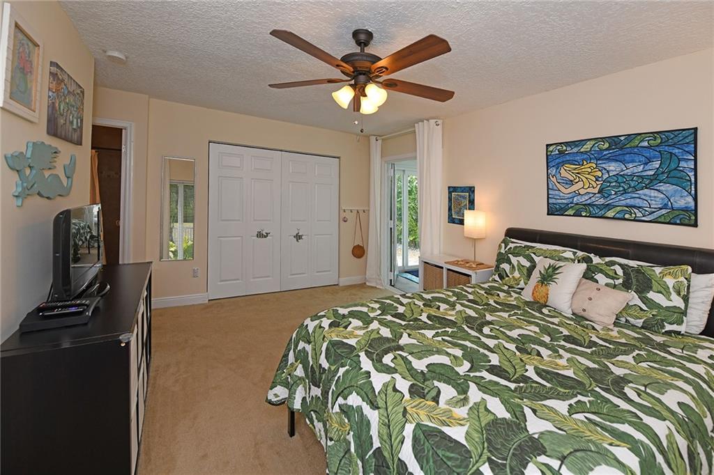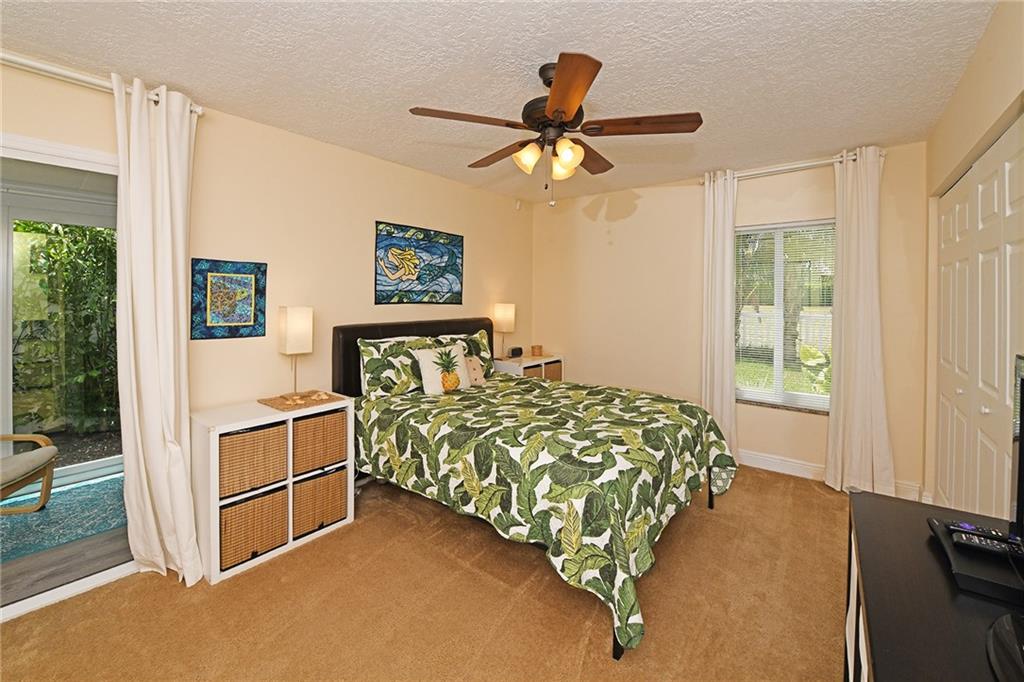 A Tropical Oasis for under $350K! Lovingly maintained 3/2 single family home on spacious south facing canal lot. 1100 light and bright sq ft + approx 100 sq ft. ensuite impact glass sunroom/office serves your work from home needs. Cathedral ceiling in open concept living area provides spacious feel. Master bedroom boasts his & her closets. Garage with deep back bay adds storage space even when parking a car. Low-E impact glass on every exterior window/door and custom solid core interior doors. Beautiful tropical views from all rooms. Private back yard with dining patio, lush landscaping and privacy fence overlooks prestigious golf club and wide canal for kayaking and fishing. No rear neighbors, easement on west side of house and tall hedges increase privacy. See supplemental remarks