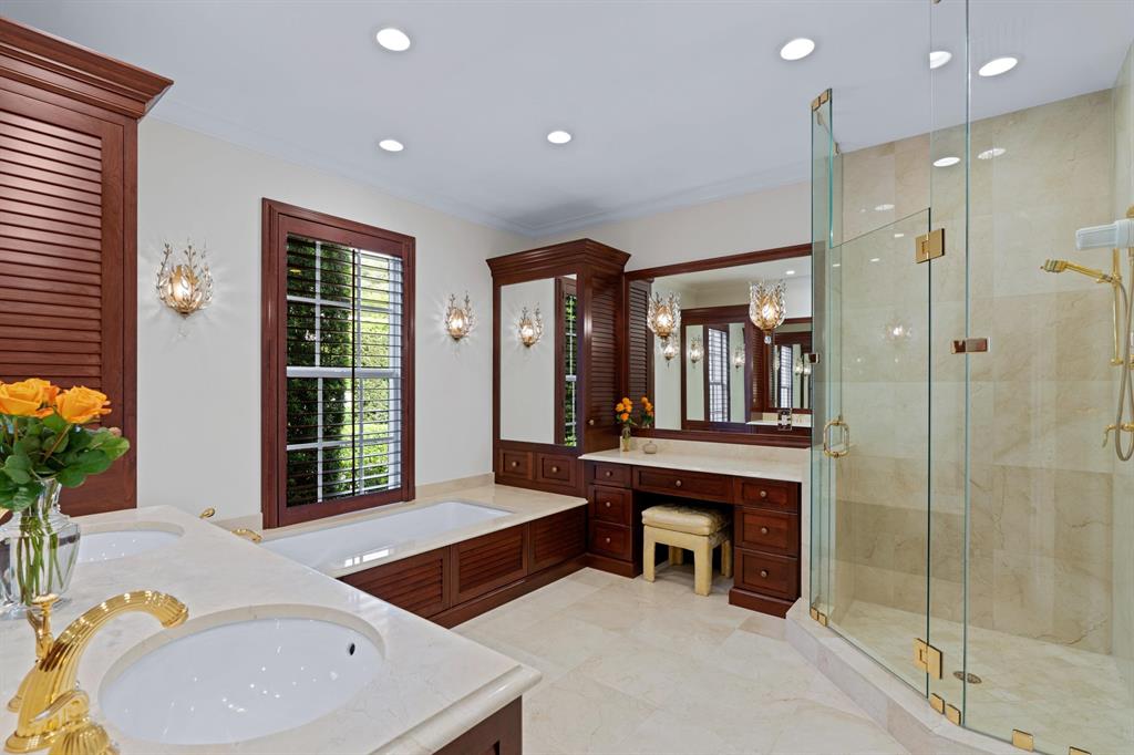 This elegantly designed 5 Bedroom, 4 1/2 Bathroom (including Powder Room) home boasts soaring ceilings,a first floor Master Suite, gourmet Kitchen with state of the art appliances, perfect for any chef, and custom cabinetry and closets throughout the home. A lovely landscaped Pool, 13 x 36, is reached by French doors from every room along the back of the home. The property features hurricane impact windows and doors. A two car air conditioned garage, also with hurricane impact door, and custom cabinetry, was pristinely updated for the car enthusiast. This home has a prime location, on one of Palm Beaches most coveted streets, within walking distance of the ocean, the Lake Trail, The Beach Club, and the Palm Beach Country Club. Furniture negotiable.
