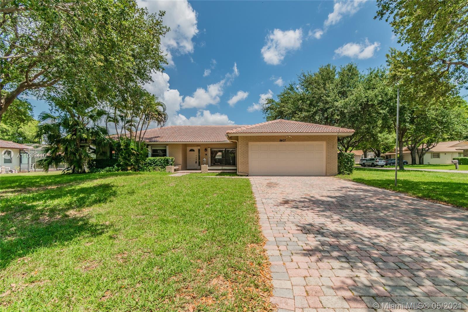 You will love this delightful single-story ranch-style home in the serenity of the beautiful city of Coral Springs Florida. This 3-bedroom, 2-bathroom home has a 2-car garage—giving you 2,407 sq. ft. of spacious elegance. Plenty of space for a family to begin or grow. Imagine relaxing by the pool with friends and family enjoying the Florida sunshine. And at night drift off to sleep in a quiet tree-lined suburb. All of this situated in a convenient, friendly neighborhood with outstanding schools, minutes away from local grocery shopping, places of worship, and other social establishments. The owner's suite consists of a large walk-in closet and large bath, there is an ideal space for a Zoom Room and plenty of room for family enjoyment.