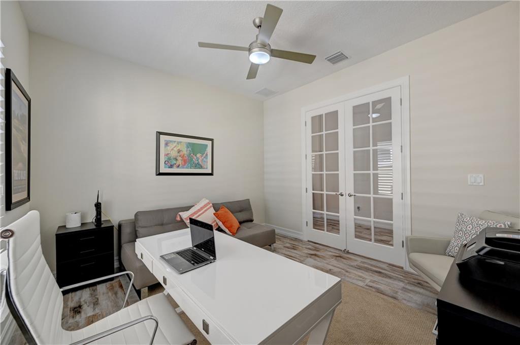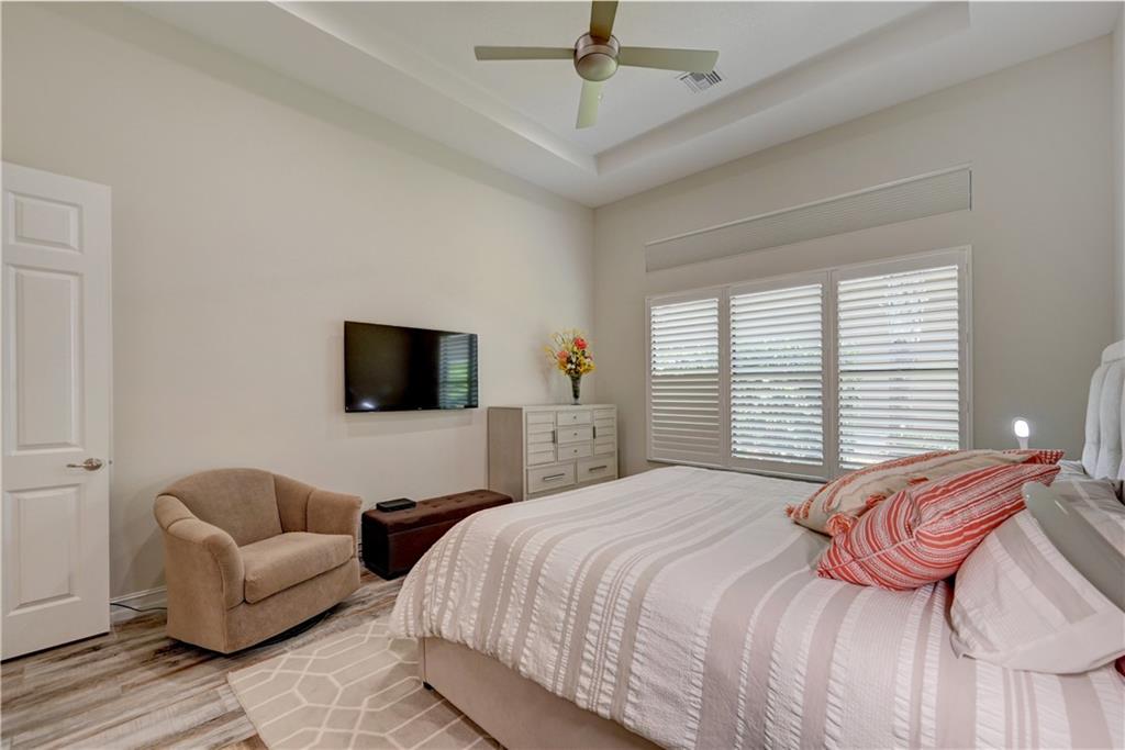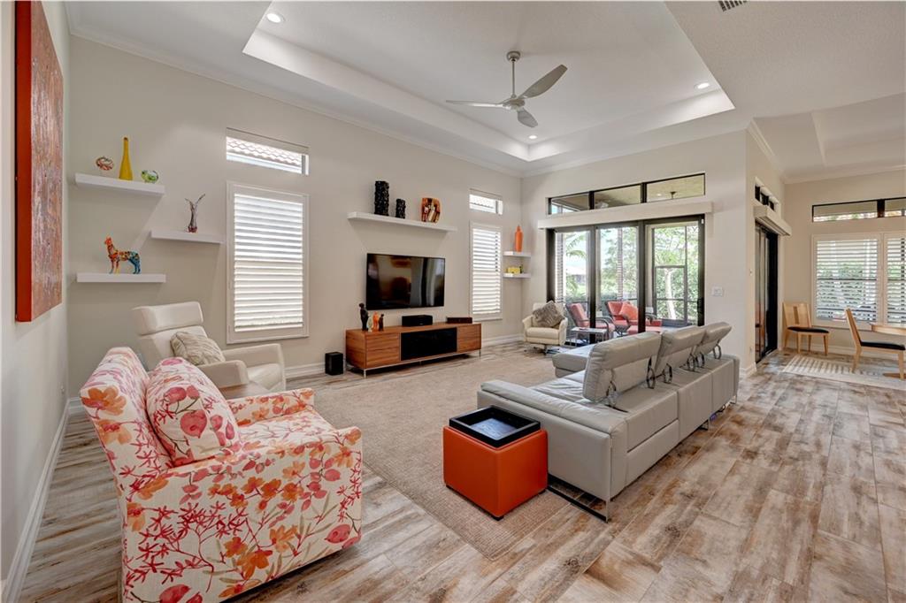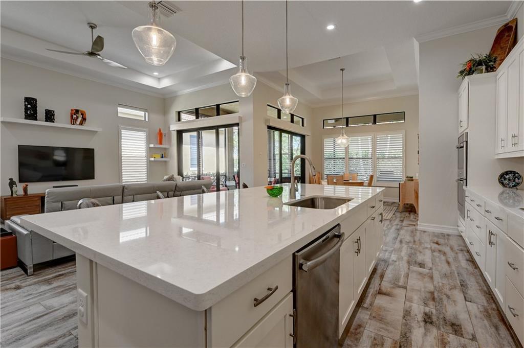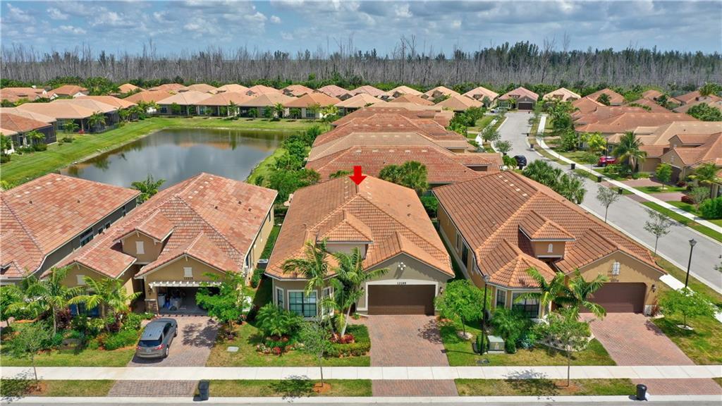 2017 NEW CONSTRUCTION! Active 55+Resort style, gated community with tons of amenities. This 2/2.5 +den single family home features: Impact windows, Emergency generator, foyer entry leads to open floor concept living area, 3rd room is a den (no closet), wood-look tile thru-out, beautifully appointed kitchen w/Stainless Steel appliances, Quartz counters, decorative backsplash, double ovens & gas stovetop, recessed lights, Plantation shutters, large laundry room w/washer, gas dryer, sink & plenty of storage, master suite boasts His & Her walk-in closets, dual sinks, separate tub & shower. Enjoy the hot summer nights and warm winters on your screened-in patio overlooking partial lake views. The 2.5 car garage has an epoxy finish on garage floor and custom cabinets for additional storage.