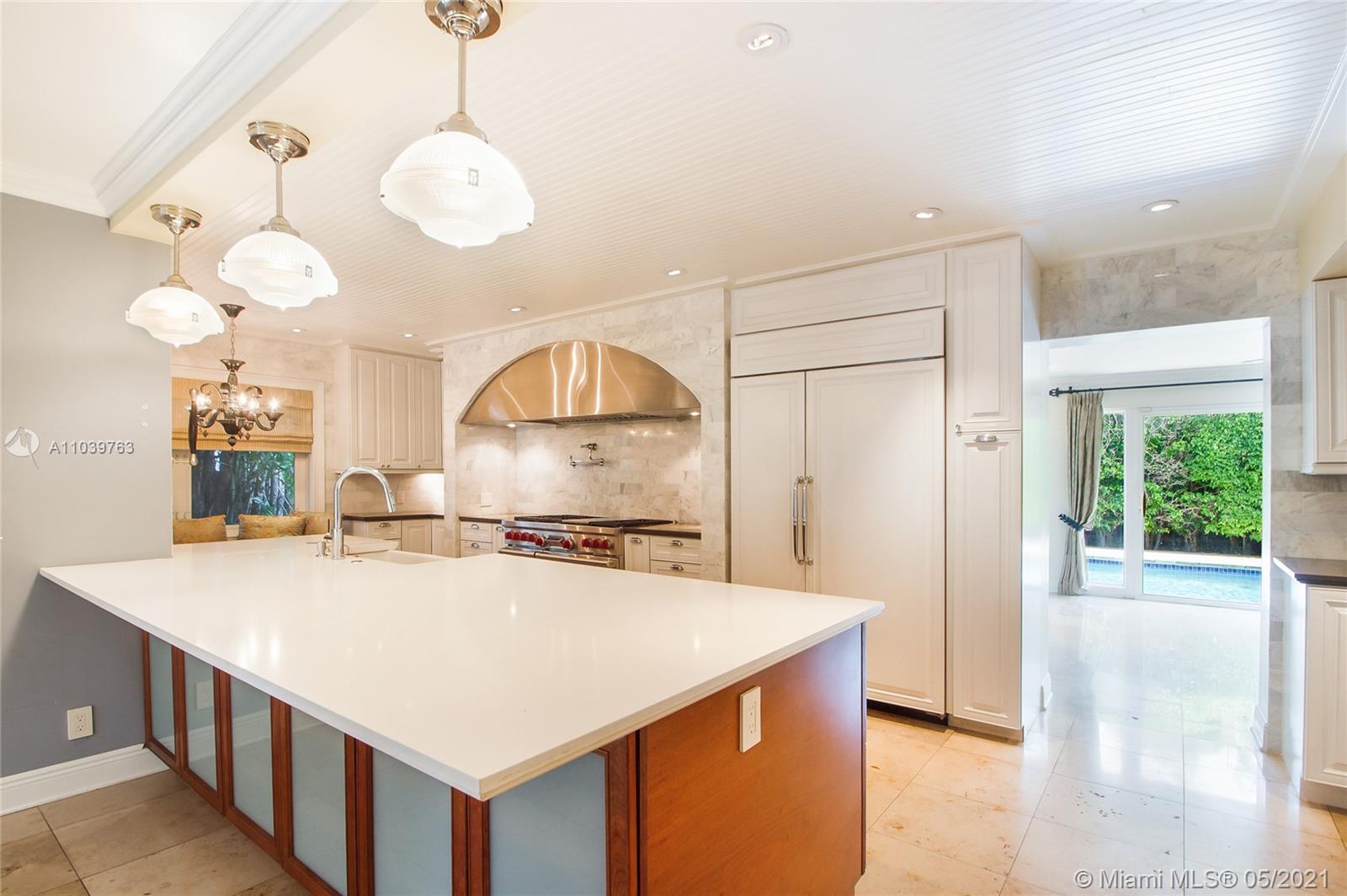 Stunning large home loaded with luxury features, starting with an over-the-top kitchen featuring top-of-the-line appliances, including Wolf gas range, three dishwashers, extra sinks, oversized pantry that has a wall of cabinetry & storage. The kitchen has extra sinks, dishwashers, & a beautiful breakfast nook. Off the kitchen area is a large AC'd garage w/ storage. The living room is expansive and has a wet bar. Off the living room is the Florida room full of light spilling in from the private pool oasis. Swimming pool area features a private cabana & the back bathrm can fully serve the pool guests. This property is a unique split-level home large enough to accommodate owners and guests. The master has a gorgeous master bath w/ a separate walk-in closet. The property also has a GENERATOR.