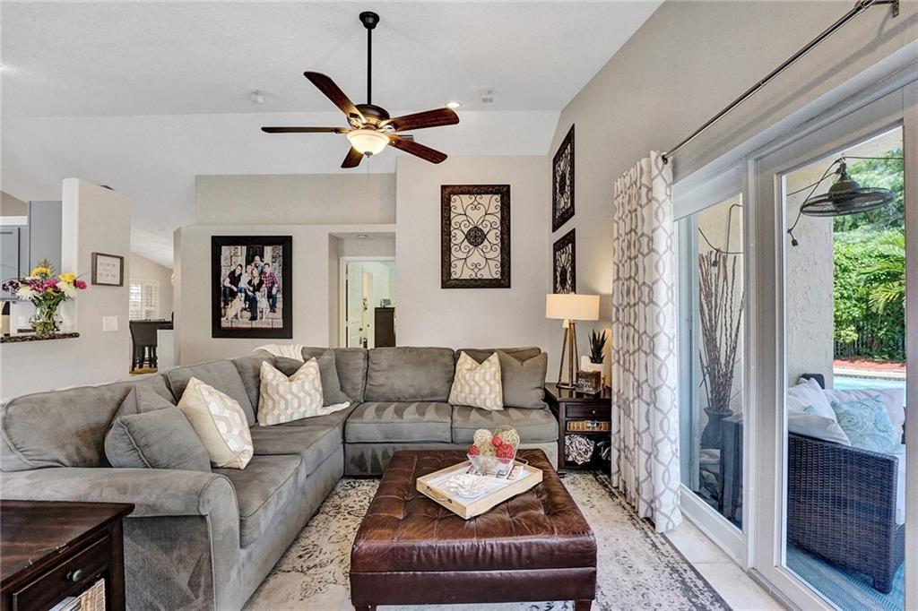 This stunning single story 3 Br 2 bath home nestled in the highly desirable quiet gated community of Coral Shores in Harmony Lakes has soaring vaulted ceilings with a wonderful open floor plan. Both kitchen & baths are newly updated with coordinating granite countertops and stainless steel appliances. Work or play by your relaxing saltwater pool. Owners just added a new a/c , water heater & pool pump. Neutral tile floors throughout the living areas with wood laminate in the bedrooms make this home move in ready. Close to the Sawgrass expressway with shops and restaurants within walking distance. Nice size home for a new family or empty nesters. A+ school district! Masks required please.
