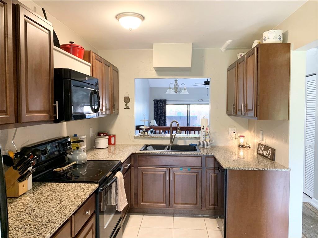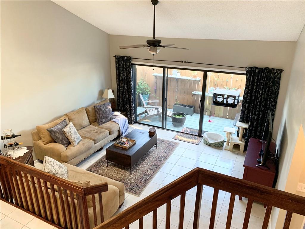 Waterfront views and lots of green space, Corner location, 2 patios and a balcony. Soaring ceilings with 2 skylights. Beautifully Updated kitchen with wood cabinets with granite counter and Stainless Steel Appliancess. Upstairs master bedroom is a Spacious loft with bathroom, double sinks and shower, walk in closet and open balcony overlooking water. 2nd Bedroom and full bathroom on the first floor and walk in closet. Patios back and front. New deck on front patio with a gate to spacious area of grass. Tile throughout. Accordian shutters on all the windows. Community Pool & Tennis Courts. Centrally Located Near 595, Shopping, Dining, Treetop Park & Bamford Park