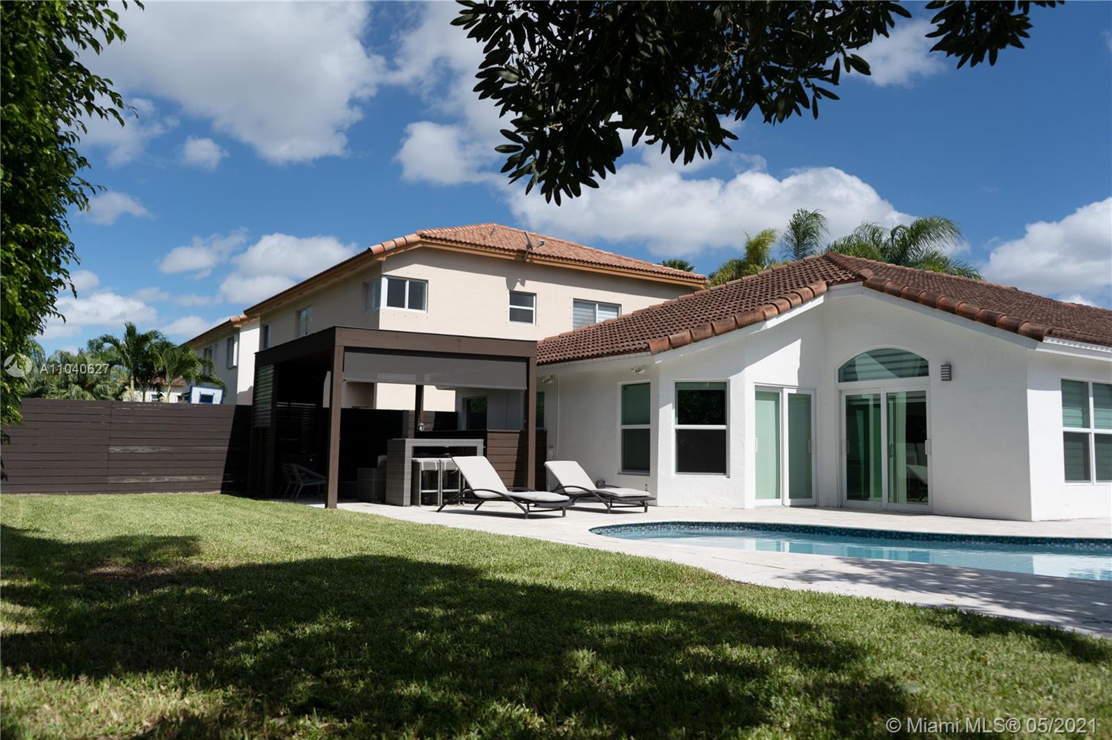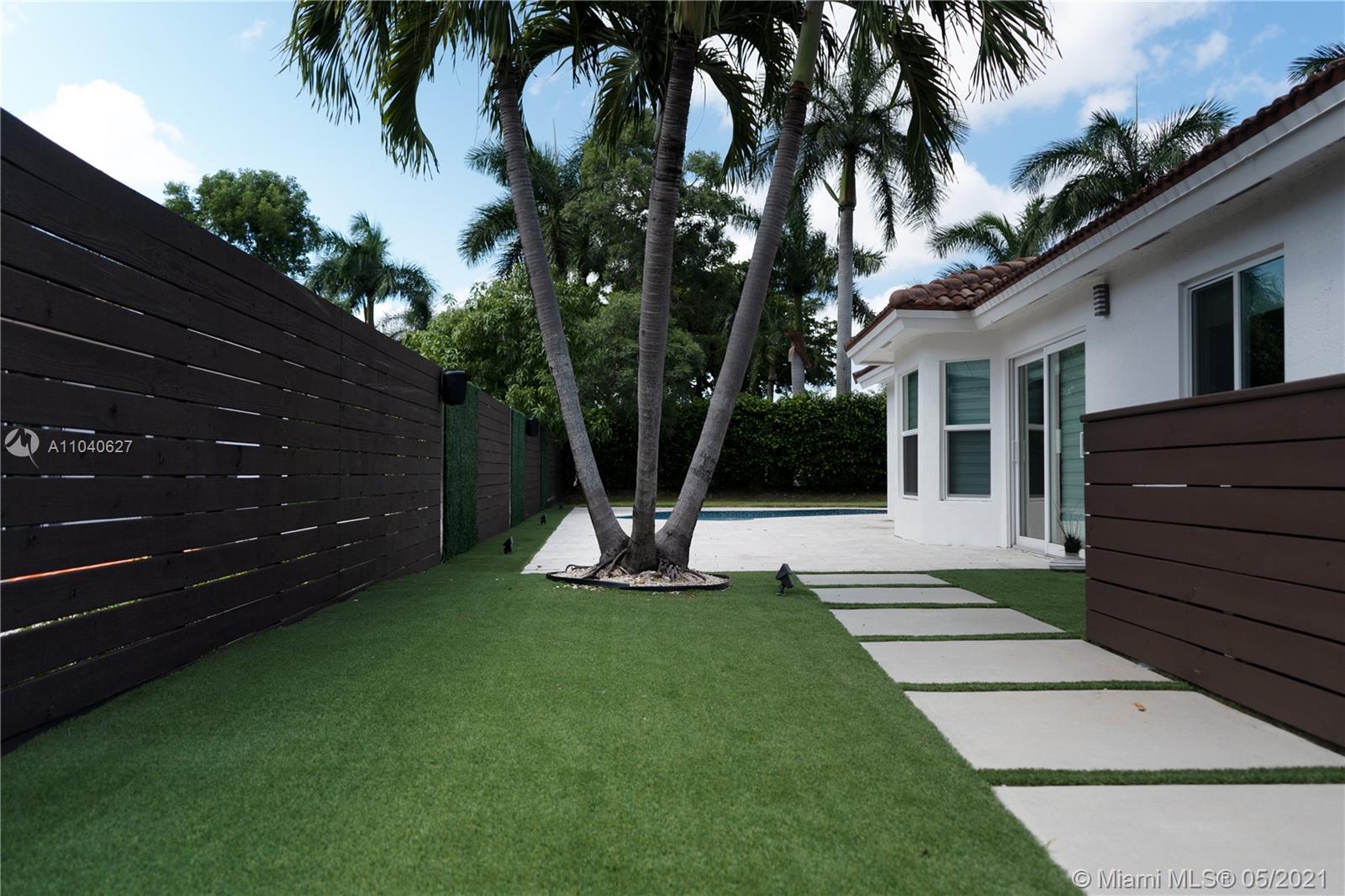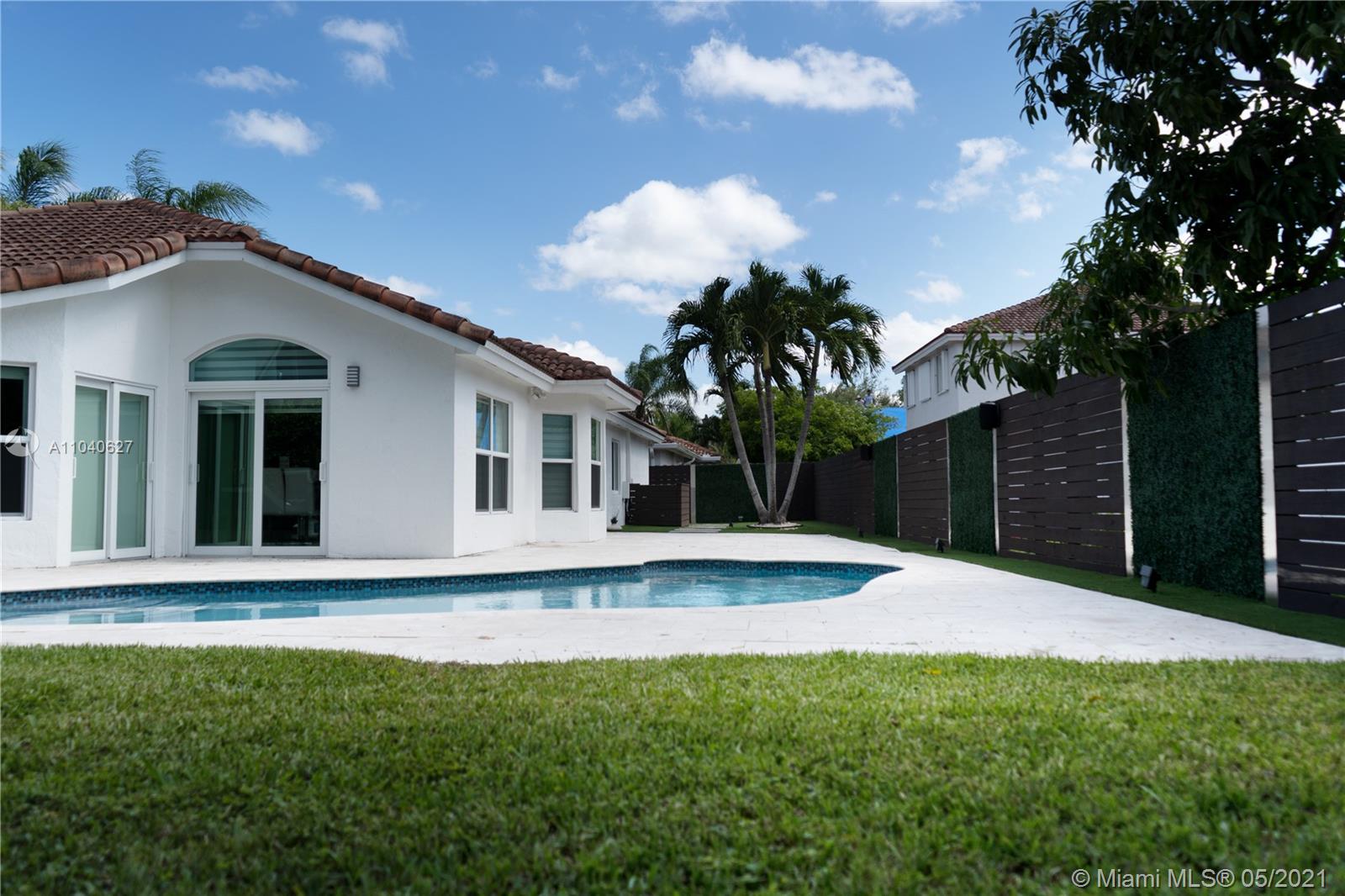 Beautiful, remodeled one story, single house in Doral Isles. Spacious Living area, that integrates the outside area to the house. Large backyard, great for entertaining with heated pool, sun deck, pergola and BBQ area. Master bedroom with pool access, large master bathroom and walk-in closet. Nice size auxiliary bedrooms. Modern custom kitchen with top of the line stainless steel appliances including wine cooler. Over-sized kitchen island with waterfall counter top, seats 8, perfect for hosting events. Washer/Dryer and 2 car garage