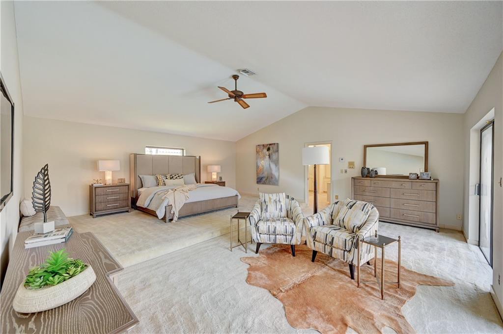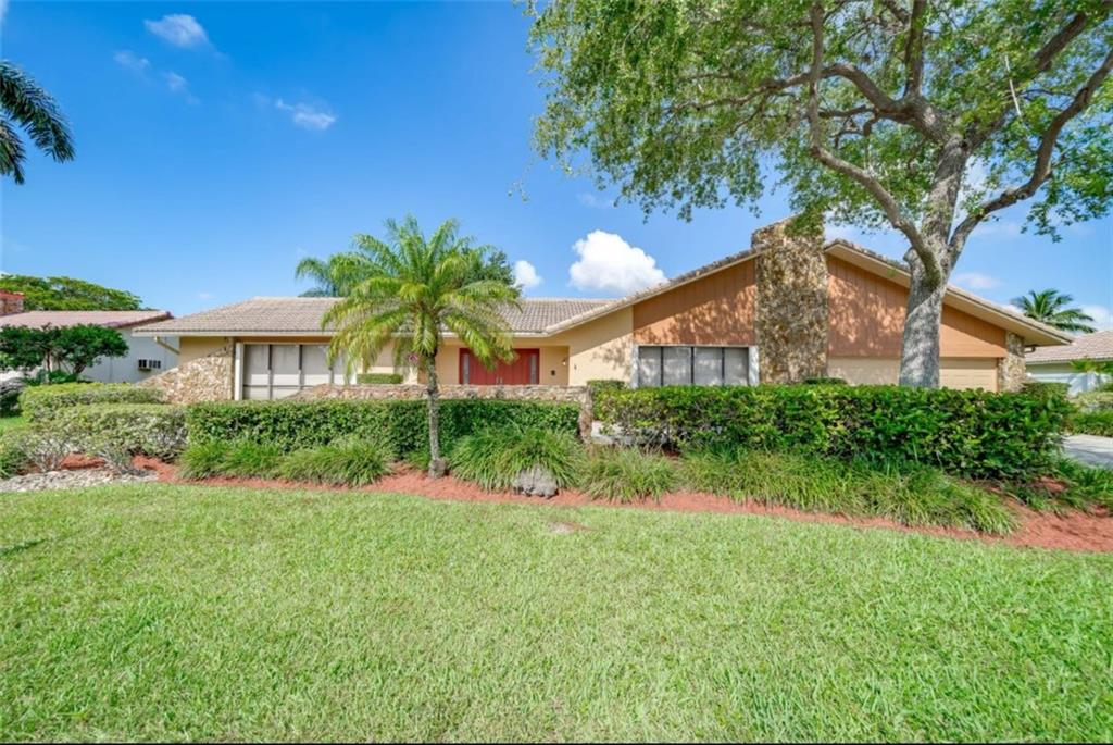 Mid Century Beauty! This expansive 5 bedroom, 4 bath, pool home (with a 2 car garage) is a blank canvas for your dream home in the exclusive community of Lago Mar Country Club. Enjoy exceptional views of the 5th fairway & green in the distance over a tranquil lake from your pool. Property features over 3,800+ sqft, vaulted ceilings, fireplace with floor to ceiling stone wall, stunning formal dining room, oversized kitchen, full bar for entertaining, oversized master suite, split bedroom plan & full laundry room. Home has hurricane protection in the form of accordion shutters, impact garage door, 3 AC units (1 Carrier 2004, 2 Lennox 2018), New Hot water heater (2020), New washer (2020), copper pipes in good condition. Lago Mar offers 24/7 manned gate security.