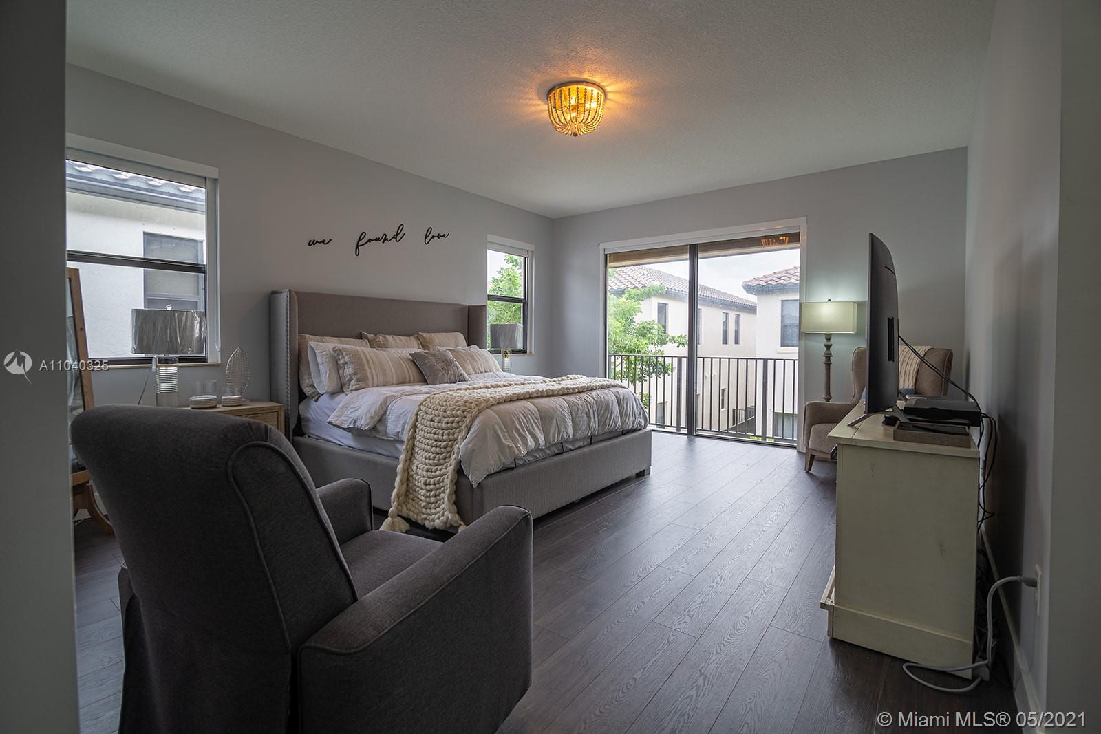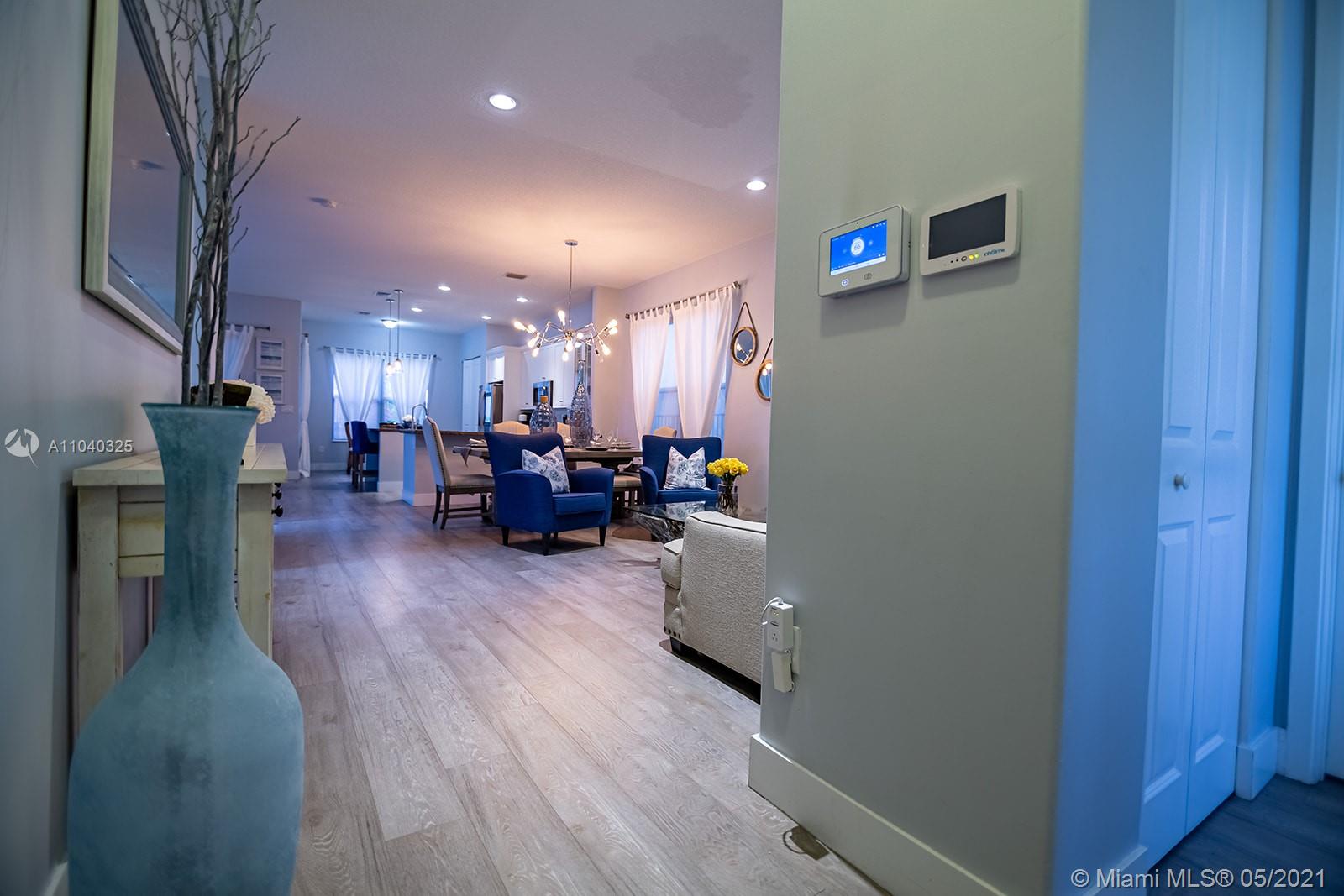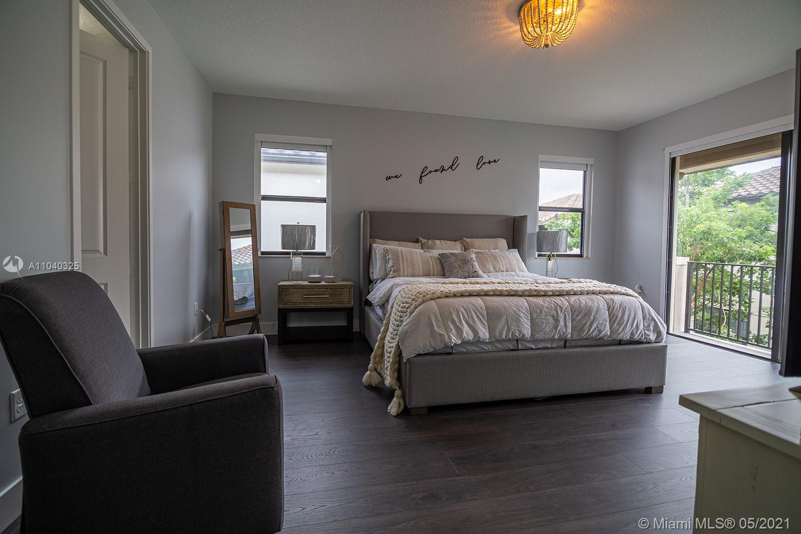 Pristine Home located in the gated Community of Bonterra with 3 bedrooms and 2 1/2 Baths. Enjoy the spacious areas and open kitchen with breakfast area, stainless steel appliances, island granite countertop and more. This home features plenty of natural light, sliding glass doors, electric blinds & open floor plan w/ high ceilings for maximum illumination. Laminate flooring throughout. Upstairs, the Master Bedroom includes a double vanity, with a Glass-Enclosed shower, bathing tub and two large Walk-In closets. Additionally, a Den that can be converted into a 4 bedroom, fully paved backyard, perfect for entertaining with playground for children. Also, Landscape, Fence, Gutters, Shutters, Epoxy flooring garage. The Community includes Clubhouse, Pool, GYM and much more. A MUST SEE!!!