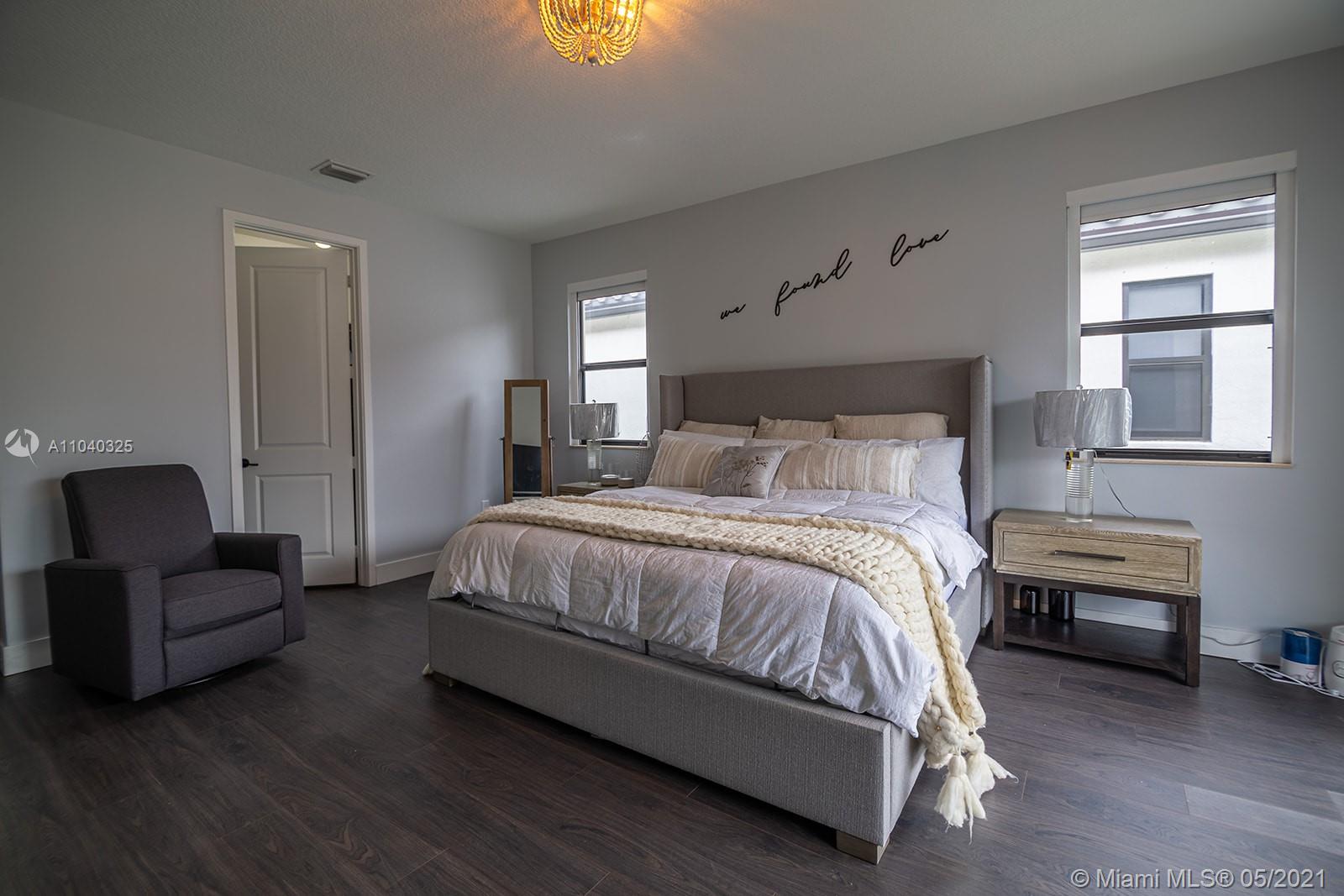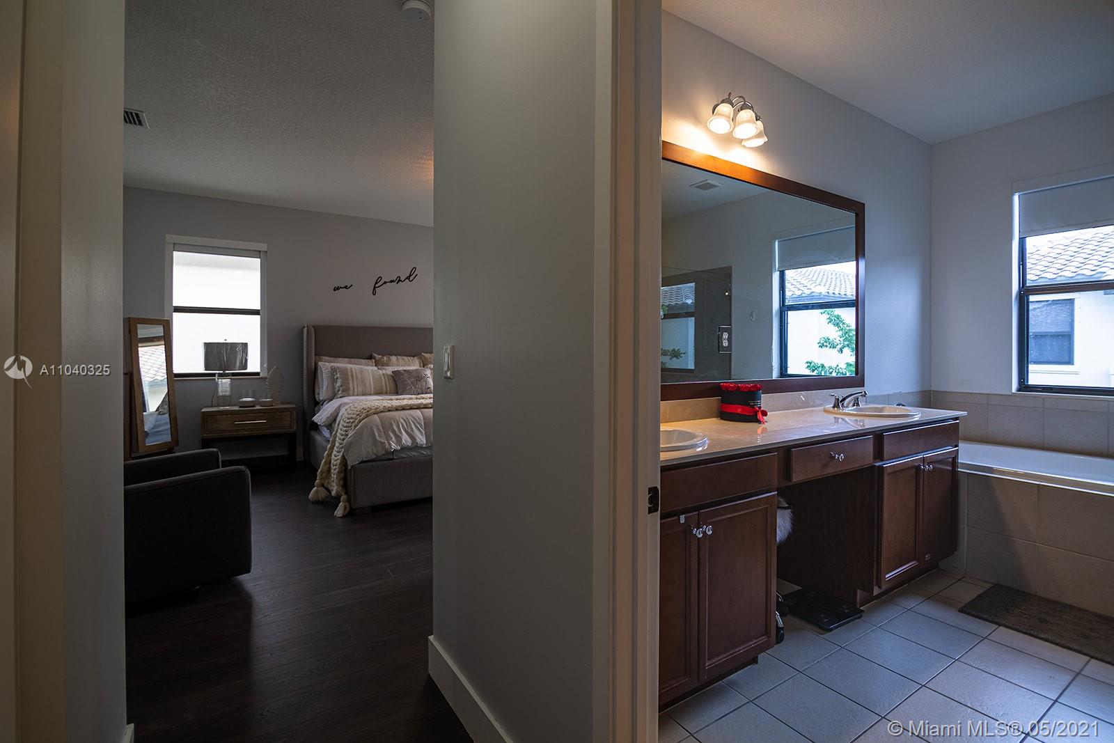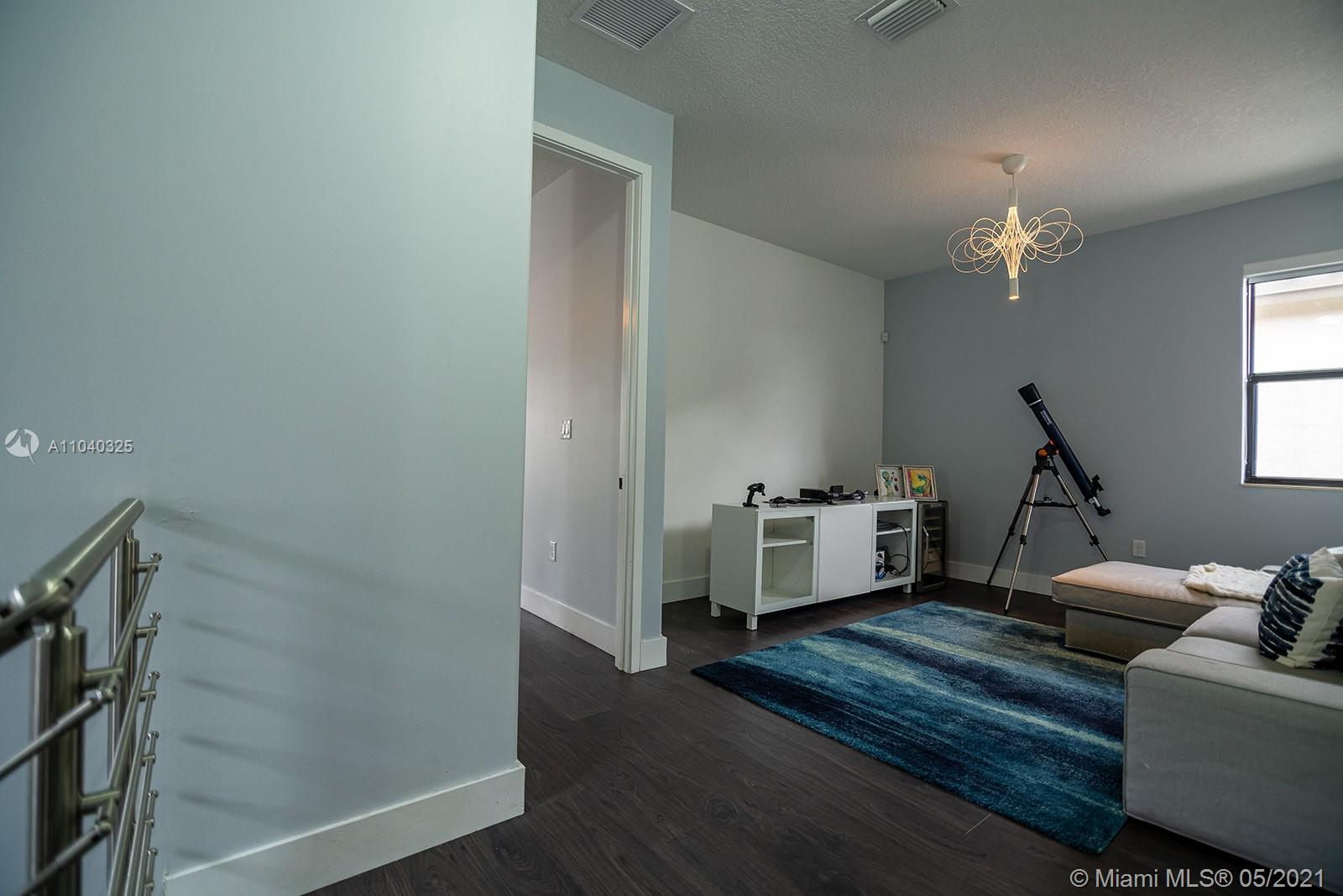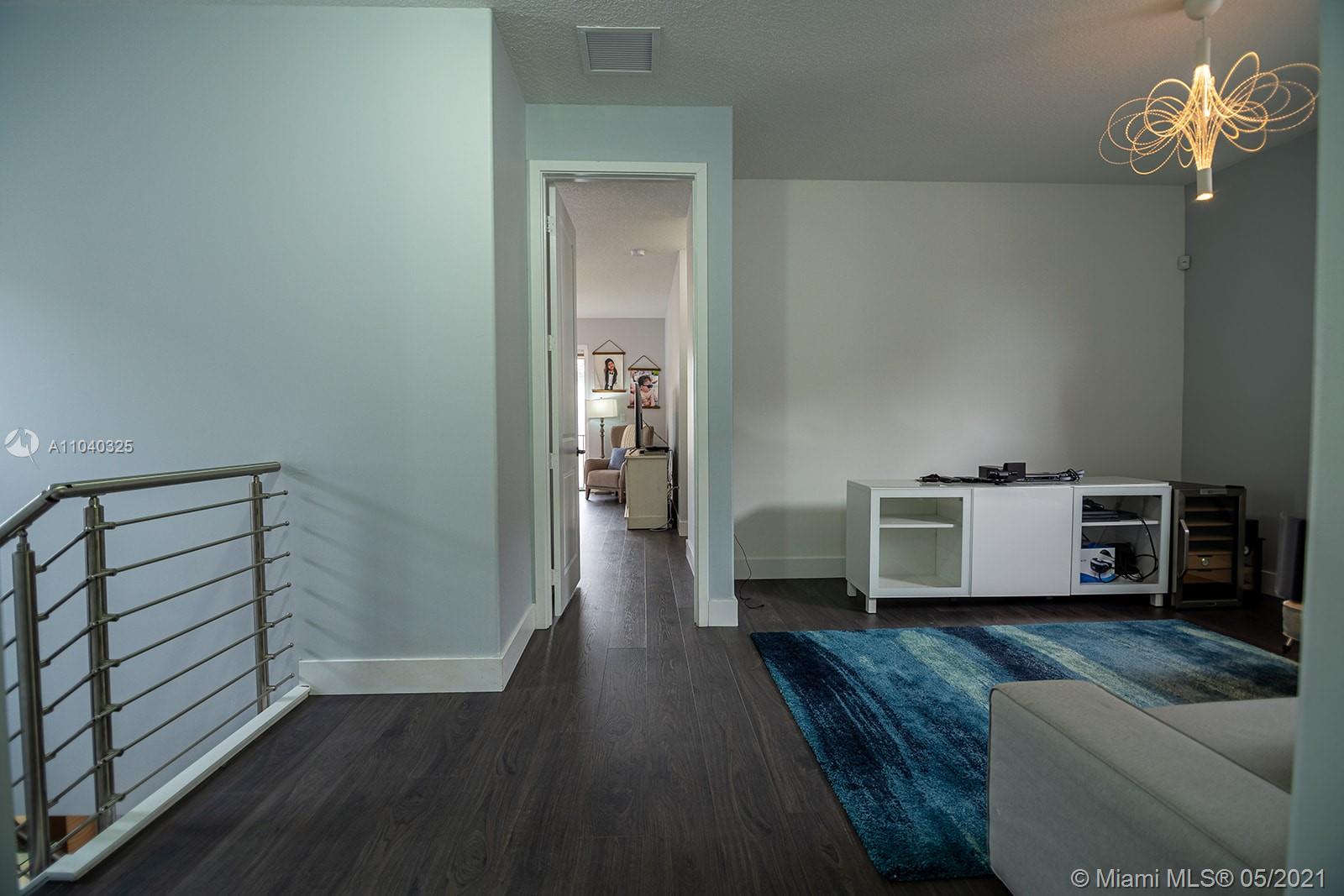 Pristine Home located in the gated Community of Bonterra with 3 bedrooms and 2 1/2 Baths. Enjoy the spacious areas and open kitchen with breakfast area, stainless steel appliances, island granite countertop and more. This home features plenty of natural light, sliding glass doors, electric blinds & open floor plan w/ high ceilings for maximum illumination. Laminate flooring throughout. Upstairs, the Master Bedroom includes a double vanity, with a Glass-Enclosed shower, bathing tub and two large Walk-In closets. Additionally, a Den that can be converted into a 4 bedroom, fully paved backyard, perfect for entertaining with playground for children. Also, Landscape, Fence, Gutters, Shutters, Epoxy flooring garage. The Community includes Clubhouse, Pool, GYM and much more. A MUST SEE!!!