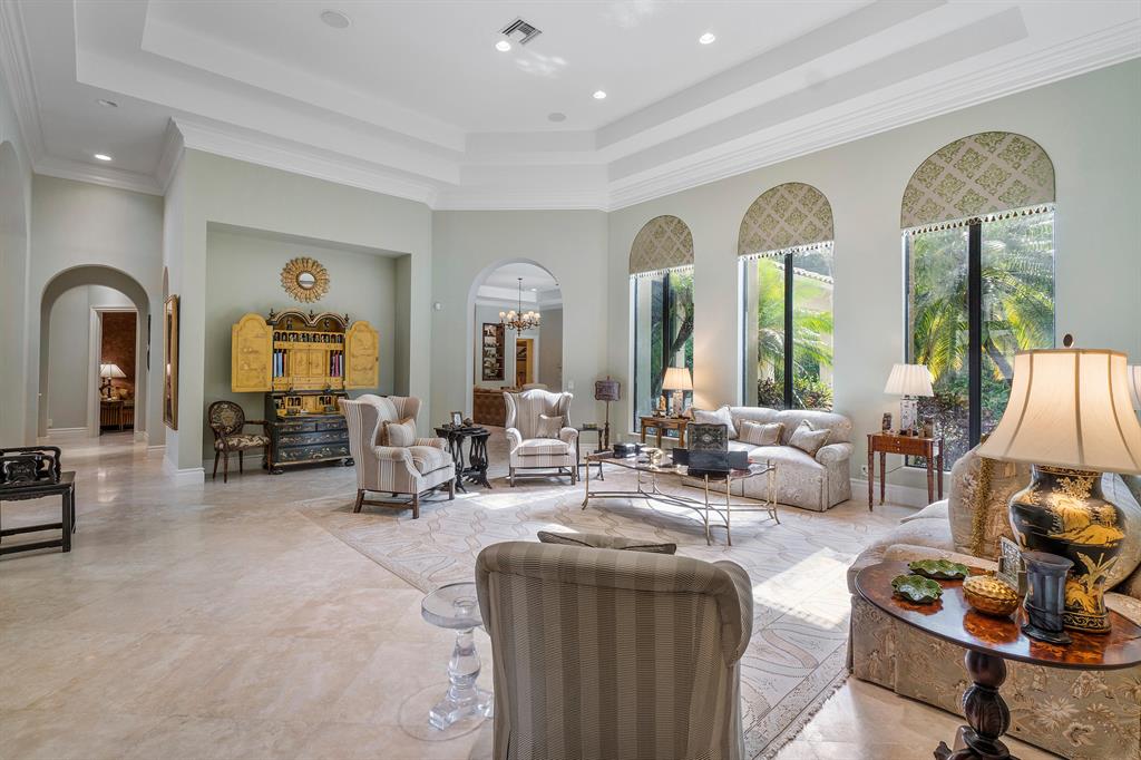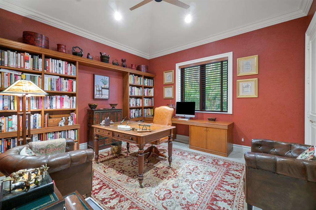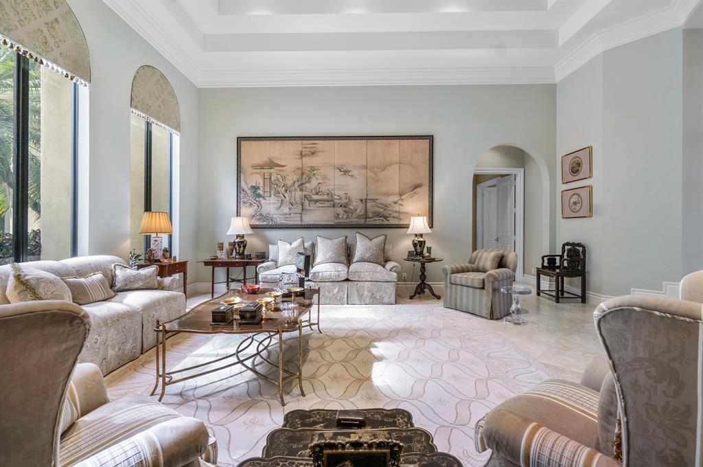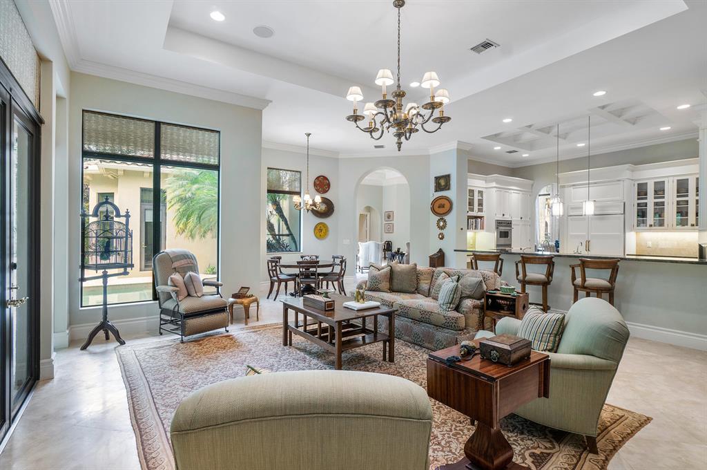 Palm Beach elegance in this custom Armand model located in the highly exclusive Grand Estates section of the Oaks. The features and professional designer appointments are endless in this single-story, 4 bedroom, plus study, 4 full and 1 half bath home. Highlights include marble floors throughout, incredible gourmet kitchen w/ professional-grade appliances, architectural millwork, wall and ceiling details in each room and living area, and AMX smart home system. Primary suite is located in a private wing w/ 2 outfitted closets and luxurious, spacious master bath with 2 private w/c's. Additional bedrooms feature en suite baths. With full hurricane impact windows & doors, resort-style pool/spa, summer kitchen, generator, and a 3 car garage. Spacious, sophisticated, and timeless.Pristine!