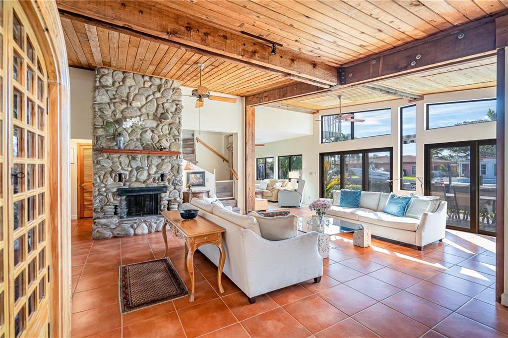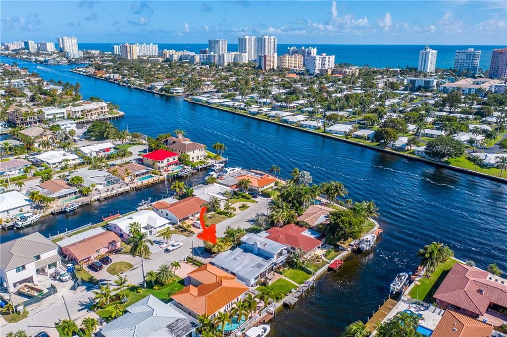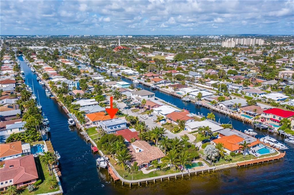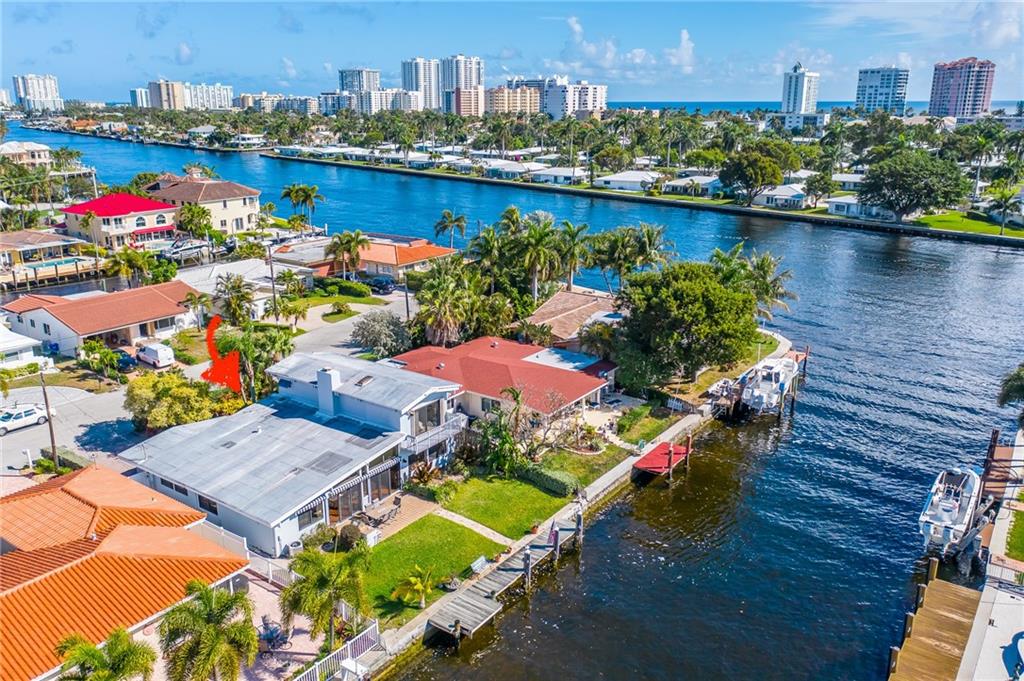 Second home from the point with fabulous intracoastal views! Spacious and stylish waterfront home in Pompano Isles neighborhood boasts exposed wood beam ceiling, 2 car garage, all impact windows, new kitchen with custom wood cabinets/granite counters and backsplash/stainless appliances with dining area attached. Entire second floor loft master suite with balcony, sitting area and spectacular intracoastal views from bed! Water views from the kitchen, living room and den/family room. Lot is 60X100 with a 40' dock (complete with water and electric on the dock so easy to install a lift). Room for a pool. Outdoor patio with retractable awnings are the perfect place to enjoy your waterfront view! Great entertaining home!