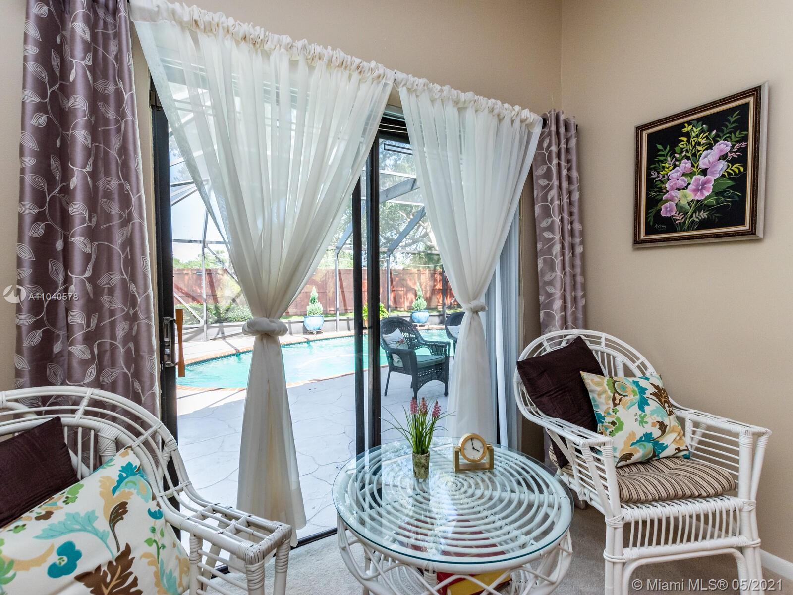 *Davie*Well appointed*4BED/2BA/*2-Car Garage w/Sparkling Screened in Pool~1-Story ranch w/Split floor-plan* Situated on a quiet cul~de~sac street that backs up to a beautiful park.Interior upgrades include:Bamboo wood & tile floors w/carpet in bedrooms. Granite kitchen w/SS appliances,vaulted ceilings,upgraded baths,double vanities in master bath w/tub & shower.This house is immaculate! **Inside Utility rm w/full size W&D!Oversized pool and patio area,fenced yard & accordion shutters on all windows!This charming boutique community“Oak Knoll”includes Pine Island Ridge CC amenities in your HOA dues.Close to all major highways,airport,hospitals & nightlife. Quick commute to Sawgrass Mall,beaches & downtown Ft Lauderdale. Great schools, walking trails and county parks are a big plus for Davie!