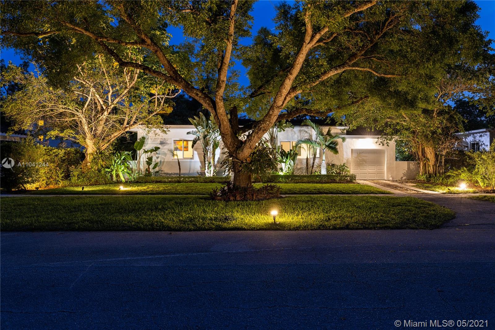 Welcome to Seagrape Escape! You’ll feel like you’re in your own personal retreat in this updated Mid-Mod jewel box home with spectacular waterfall pool, entertainment deck and expansive rear gardens lined with beautiful seagrape trees! So much room to relax, lounge and entertain inside and out. Enjoy spacious living and dining that opens to bright, vaulted-ceiling, large window-lined media room overlooking the glistening blue pool waters and lush garden landscaping. Fantastic features: two spacious bedrooms; updated kitchen and bath; new roof, AC, and impact windows-doors; hardwood floors; and a one-car garage. Located on a large lot with room to expand on a quiet, tree-lined street, just minutes to downtown Miami Shores restaurants and shops. Bonus: non flood zone. Jump in and escape!