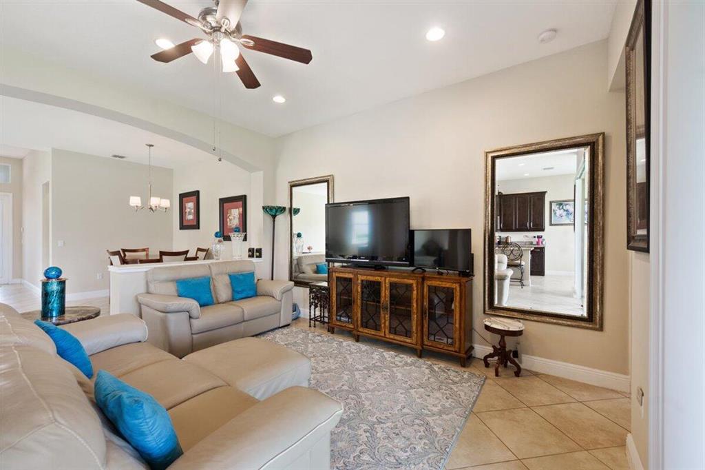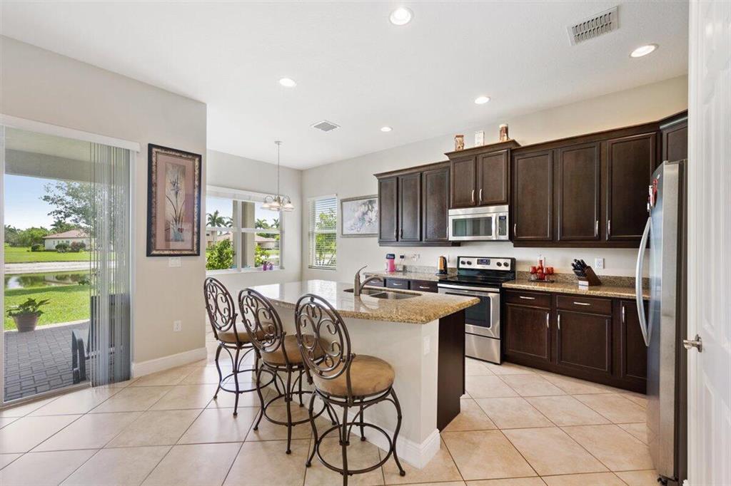 Beautiful lakefront, Barcelona Model, features 3 bedrooms 3 baths. Located on private cul-de-sac and sitting on one of the most beautiful lots in the community. Neutral ceramic tile laid diagonally throughout the main living area.Gorgeous landscaping and panoramic lake views surrounds this well maintained home with all ''impact glass windows, sliders and recently installed impact-glass entry double doors''. Gourmet kitchen features granite counter top center island (breakfast bar), nook and SS appliances. New high efficiency AC system installed July of 2020 and seamless gutters in 2019. The expanded driveway will give you plenty of additional parking and was resurfaced and sealed just about a month ago and offers a 2 year warranty. The home has gorgeous lake views from living room