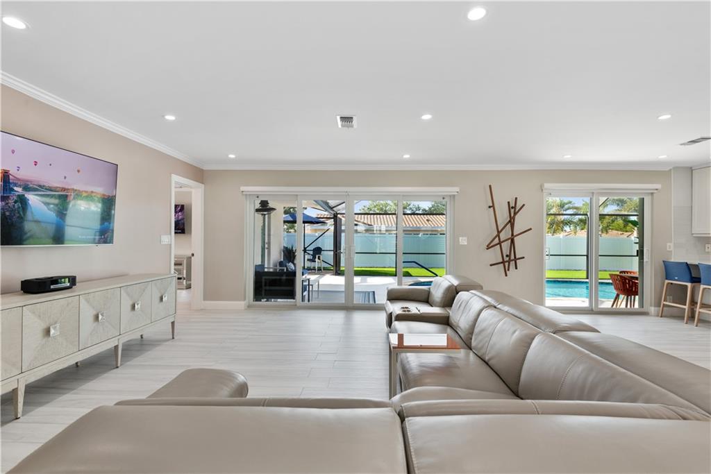 Beautiful Imperial Point pool home on an oversized corner lot! The sellers carefully planned out every detail in this full home renovation. New features include: roof (2020), fascia, seamless gutters, impact windows and doors, flooring, kitchen, baths, hybrid water heater, A/C, motorized shades, central vac, security cameras, garage door, screened enclosure, summer kitchen, synthetic grass and much more. The fresh white kitchen is complete with window over the sink and breakfast bar. Neutral porcelain flooring runs throughout the entire home. This home is in pristine condition and completely move-in ready!