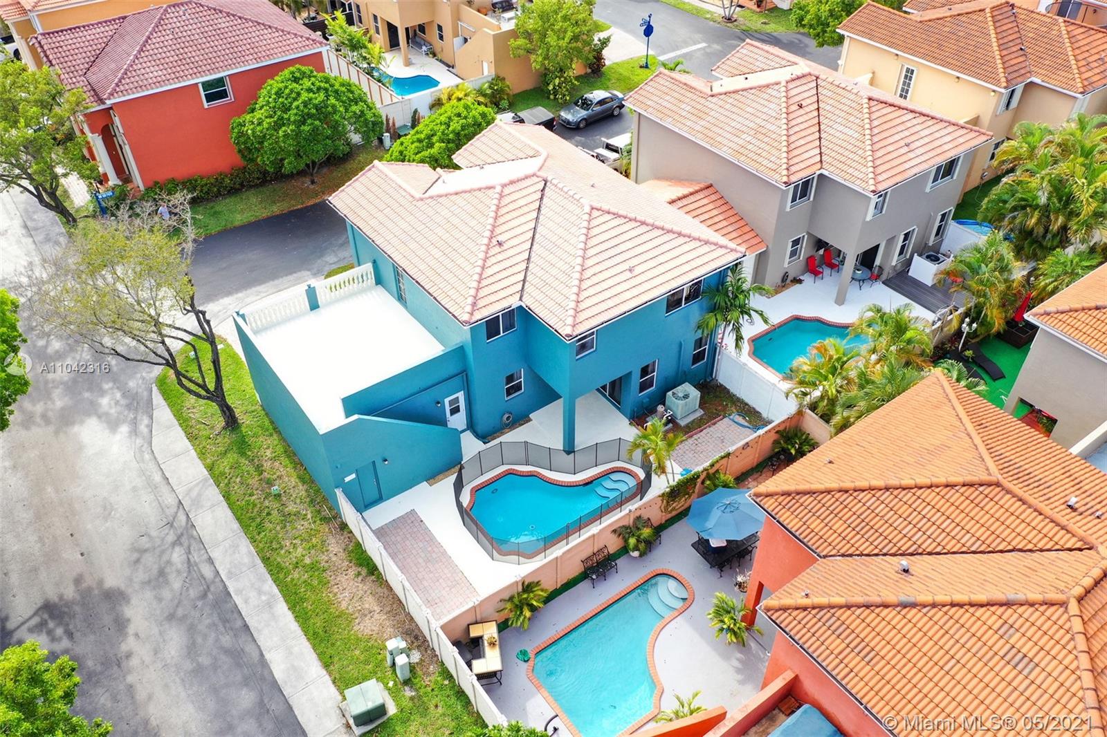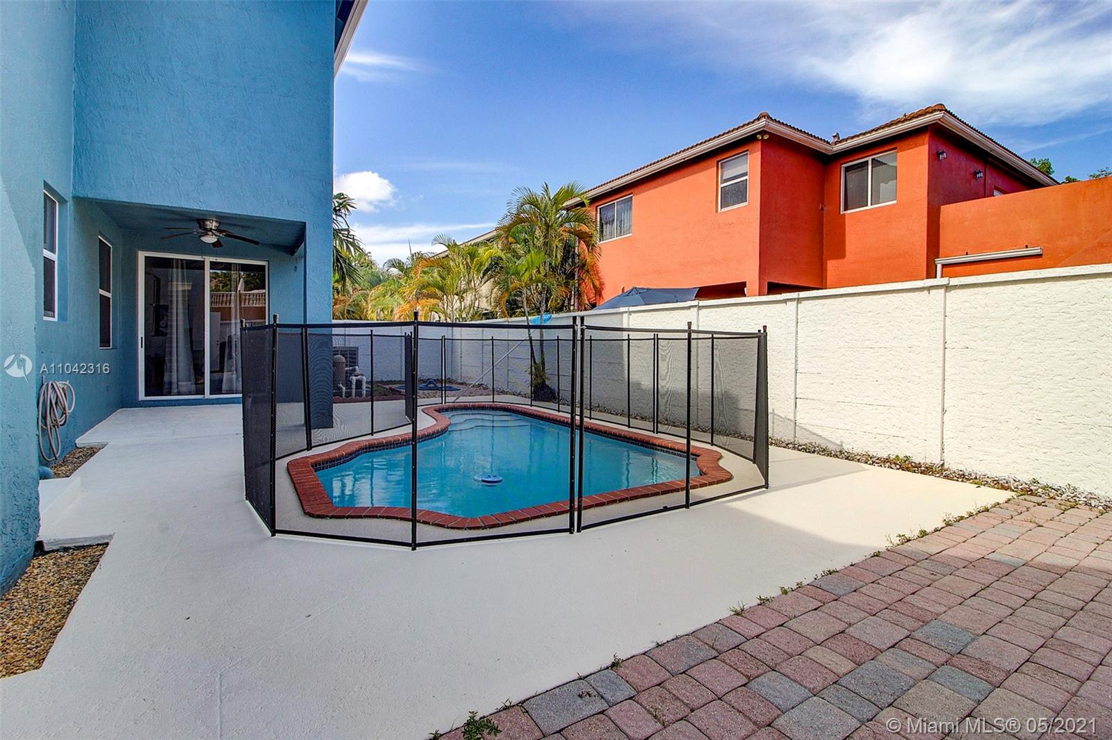 Just listed this beautiful Mediterranean style two story corner pool home in the safe and family friendly gated community of Piazza Vecchia. This pool home features 3 bedrooms /2.5 bath, and an additional half bathroom located in the pool area. Spacious/Open floor plan offers many updates throughout including kitchen with new quartz counter top and new SS appliances, remodeled bathroom sundeck/terrace on the second floor overlooking the pool perfect for entertaining. Huge master room with crystal chandelier, master bathroom with double sink, separate Roman bathtub and shower, plenty of closets and storage. Great location near A rated schools, major malls, parks and highways. HOA includes cable, internet, ADT security system and common areas. Home is priced to SELL & Easy to show!