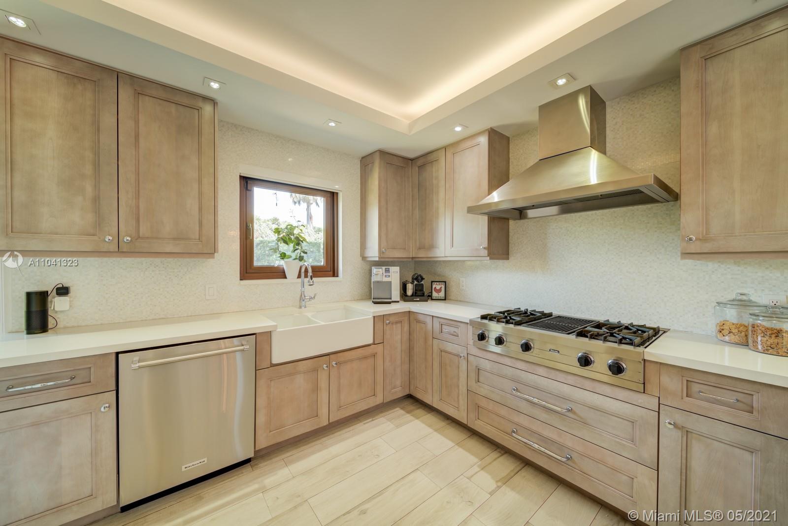 Fully remodeled Art Deco gem designed by famed Architect L. Murray Dixon. The perfect combination of Modern Elegance & Classic Miami Beach architecture. This home boasts an open sunlit floor plan with striking vaulted ceilings. All New Spacious Kitchen featuring Quartz countertops, Viking Range, Sub-Zero refrigerator, Snack Bar & Custom Pantry. New Bathrooms w/Quartz & Ann Sacks finishes. Large Master suite with Steam Shower & Soaking Tub w/Jets. Italian tile & hardwood floors, Coral Stone Fireplace & Italian French doors lead to the Spectacular Patio with built-in BBQ & tiled outdoor Fountain. Perfect for entertaining! Complete with a fenced side yard, large 2 car garage w/built in storage & Italian Impact Windows! This home has it all in a wonderful location, just 1 mile to the beach.