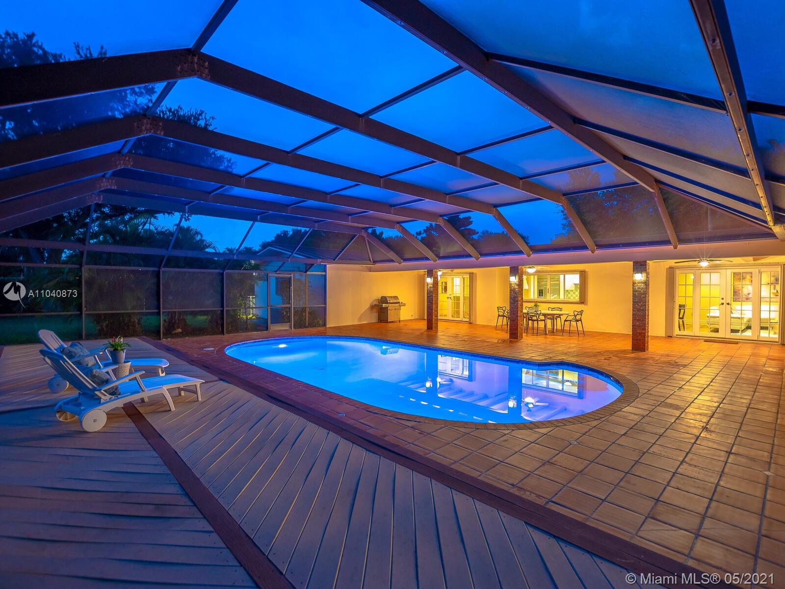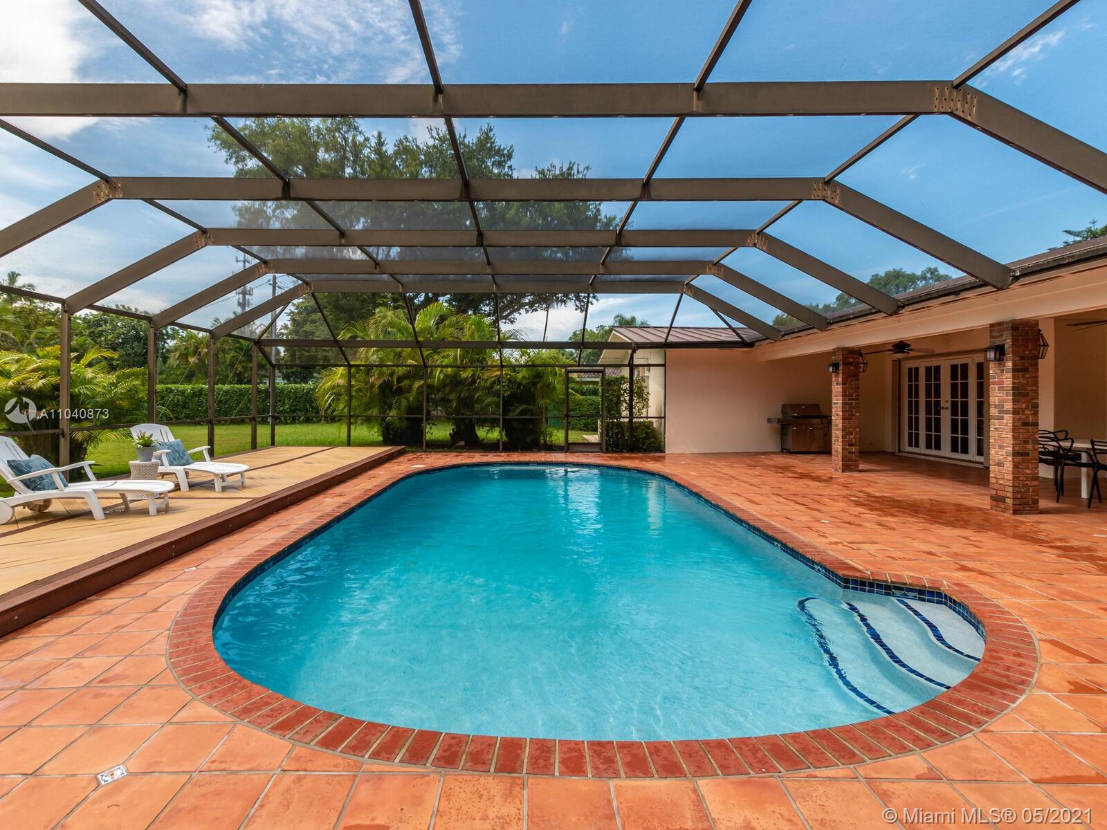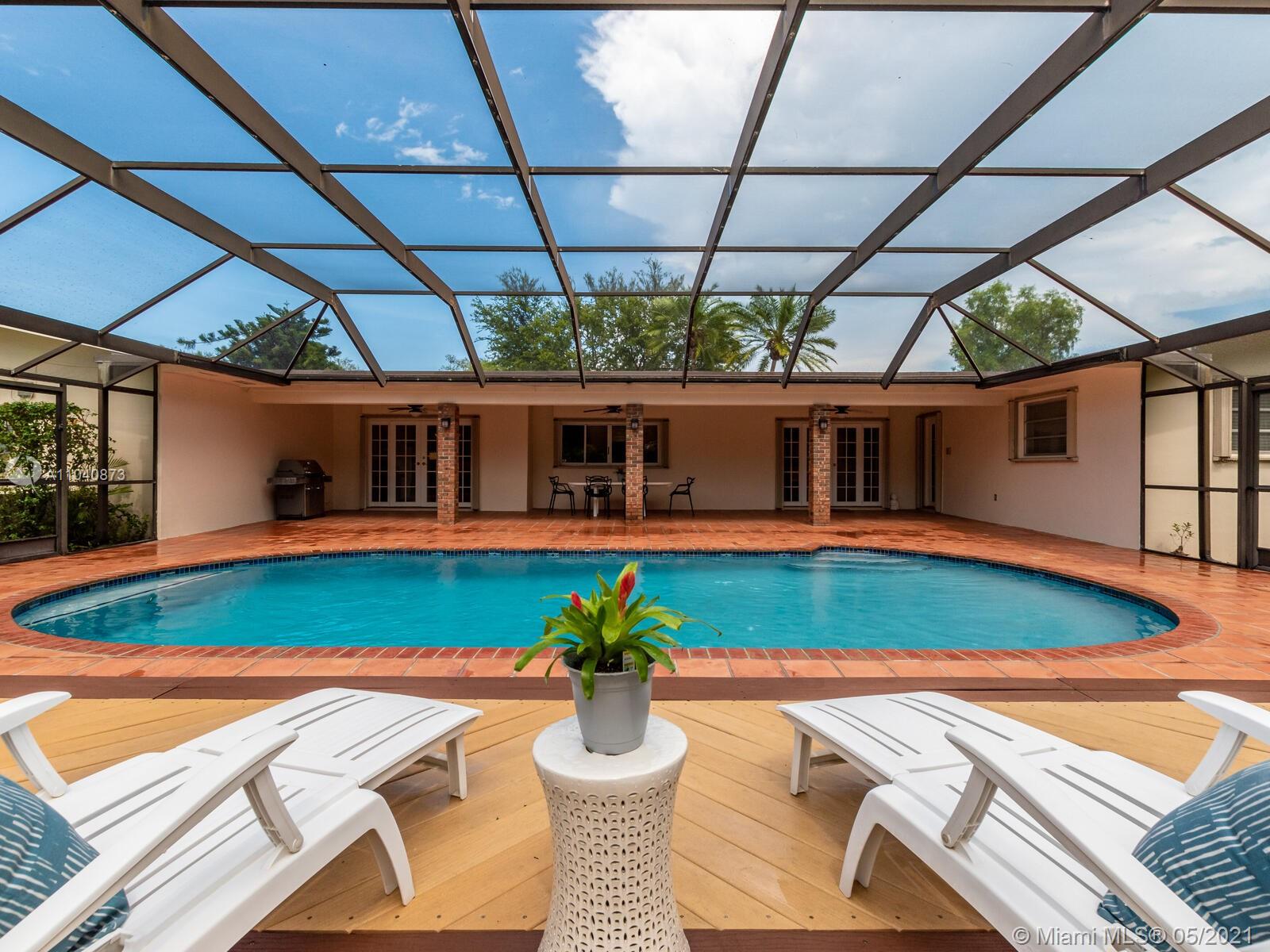 The perfect Pinecrest 4BD 3BA home plus office is set beautifully upon a deep .75 landscaped acre on a peaceful street surrounded by lovely properties. Functional split bedroom floor plan offers 2755 sf liv area with 3272 Adj sf. Light-filled French doors open from family & dining rooms to large, covered patio & dome screened pool offering a wonderful entertaining venue. Aluminum roof, accordian shutters, big circular drive, 2-car gar & separate laundry room. Bright white kitchen & breakfast area with big window views of the sparkling pool & expansive yard, lots of room to play! Within walking distance to the top-rated Palmetto & private schools, groceries, restaurants, cafes & shops. This lovely home has been meticulously maintained for by the same owners since 1987. Not in a flood zone.