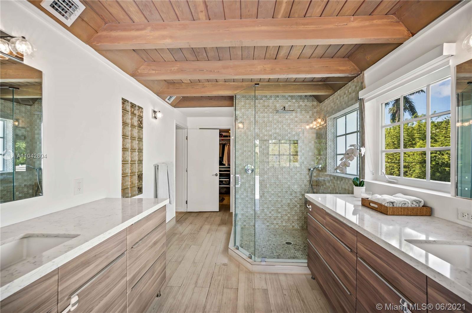 Enjoy living in the beautifully renovated home in prestigious gated Morningside, which is centrally located just a few minutes drive to the Design District, Wynwood, Airport, Miami Beach, Brickell, museums, beaches, restaurants and schools. This home has 3 generous bedrooms upstairs with a spa-like bath and terrace, as well as impeccably maintained wood floors. The generous living area has a fireplace and additional room which maybe used as a home office, playroom or den. Enjoy the spacious backyard, large wood deck and mature lush landscape. Owners have the plans for a pool. Morningside offers a large community park on the water with tennis/ basketball courts, public boat ramp, playgrounds and green space.