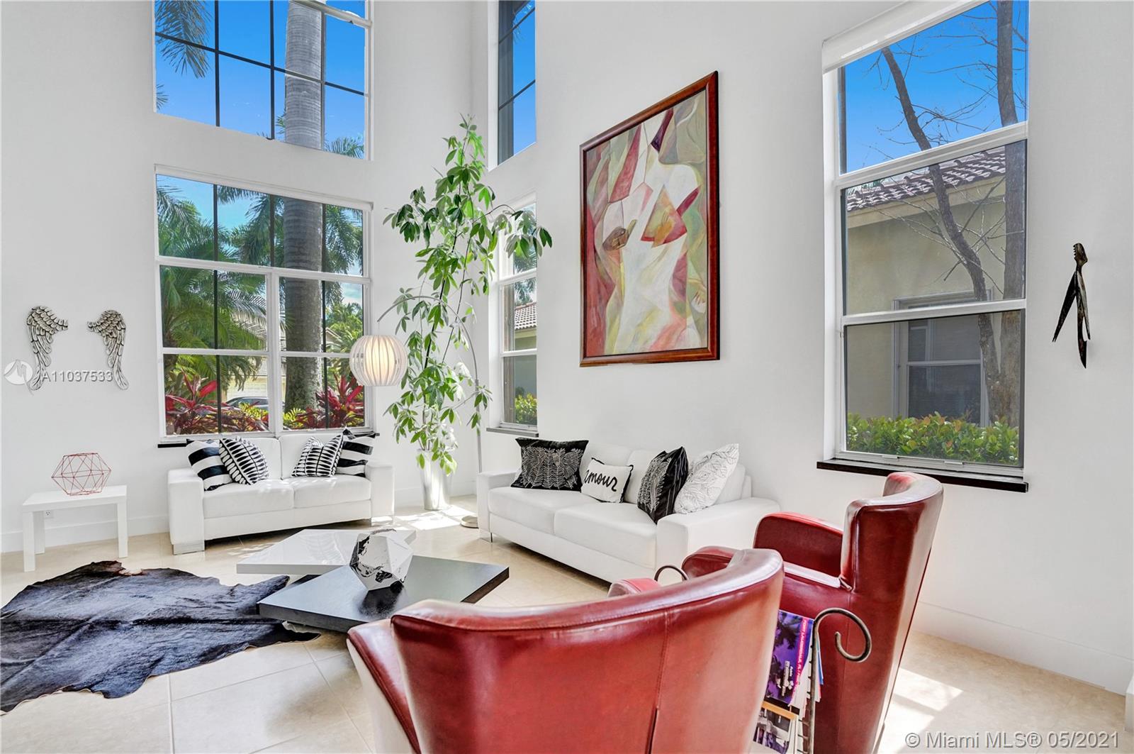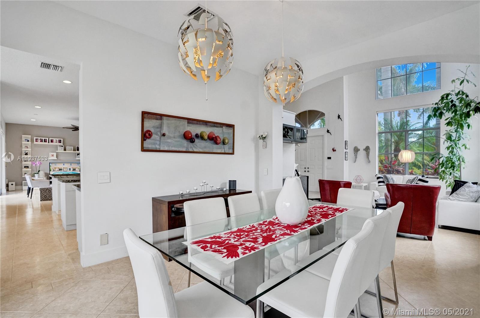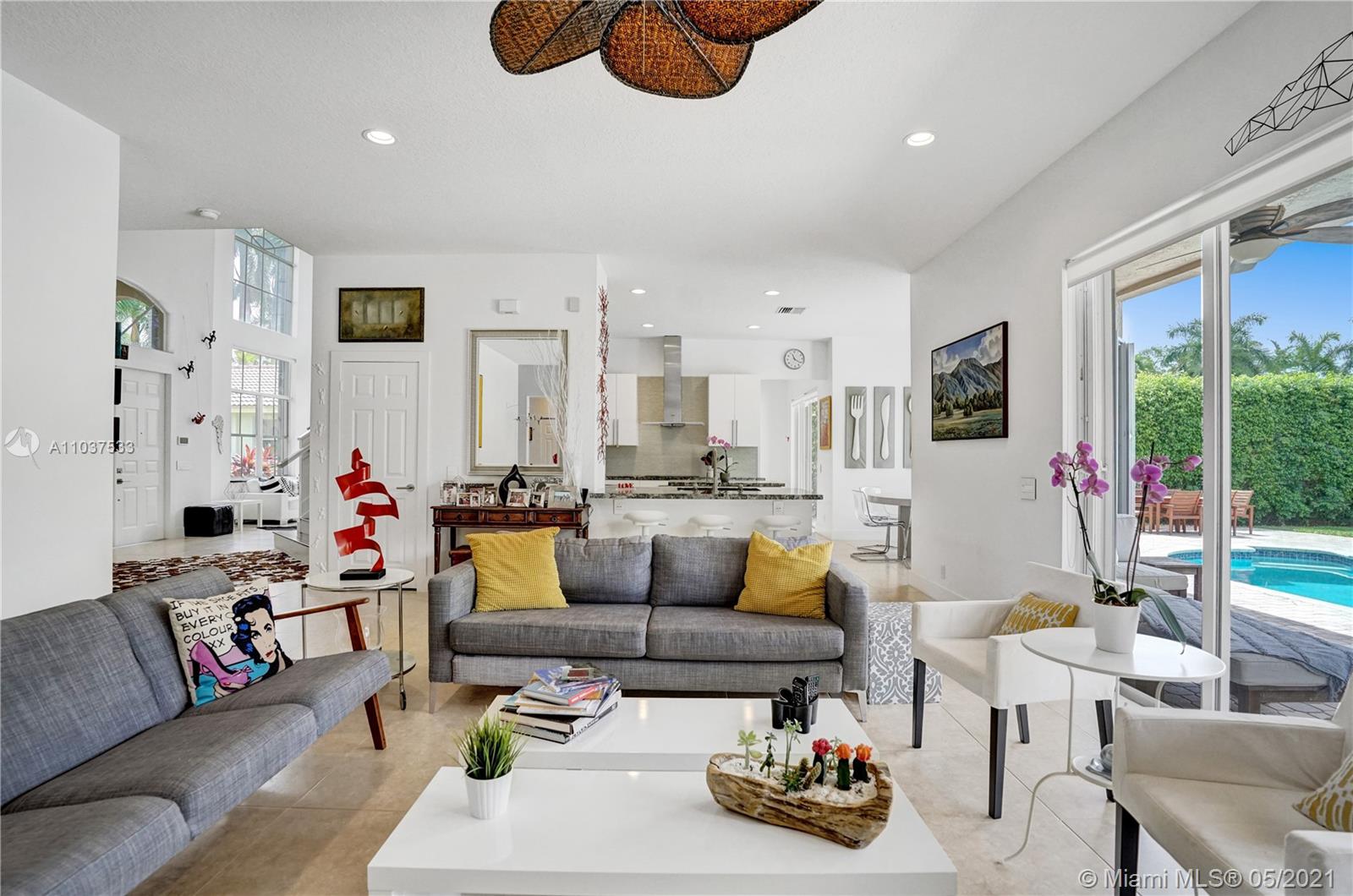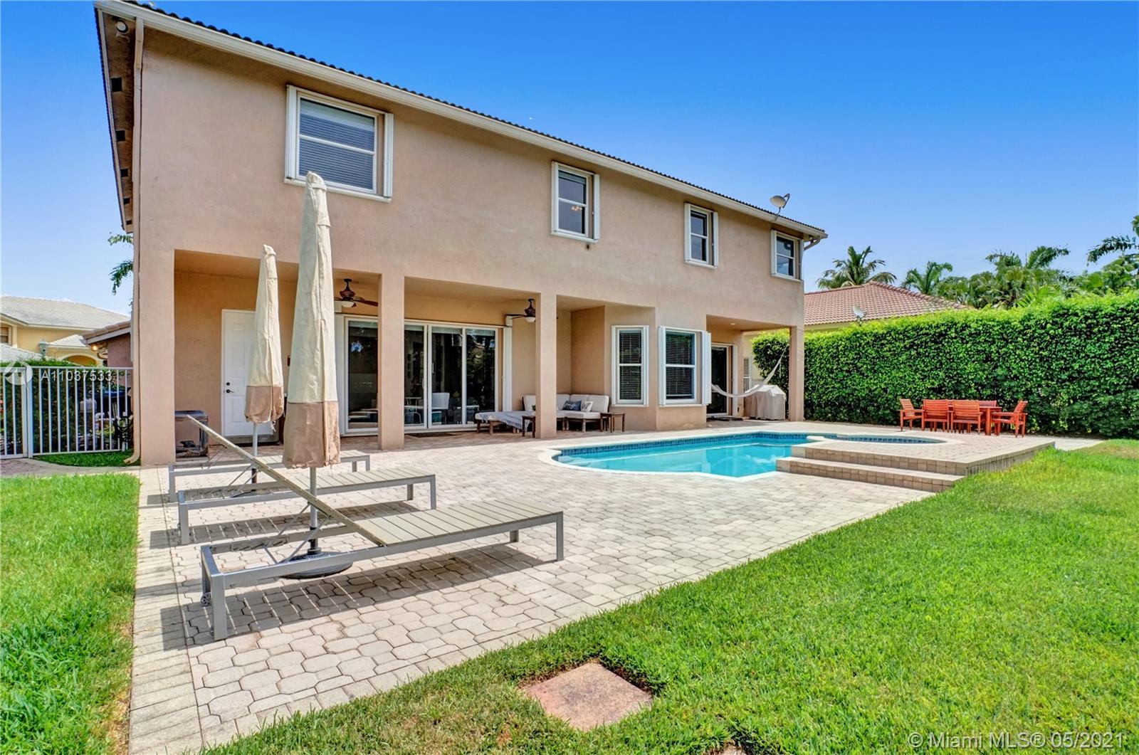 This Immaculate Two-Story modern contemporary home is perfectly set on an 11,204 SF lot. Situated in the prestigious "Victoria" at Weston Hills Country Club. Tastefully remodeled in 2016. Featuring 4BD/4BA/Den-Office/Maid-Bonus Room and 3-Car Garage. Spacious master suite located on the second floor with a walk-in closet and sitting area. Kitchen features a stacked-glass backsplash, SS appliances, granite countertop with a breakfast area that looks out to a retreat-style backyard, and an inviting pool. All bathrooms feature new tiles, glass shower doors, and new vanities. The double-height entryway, well-proportioned 3,979 SF living space and natural light makes this home unique. Other features include central Vacuum, custom window treatments, outdoor automation lighting, closet/cabinetry.