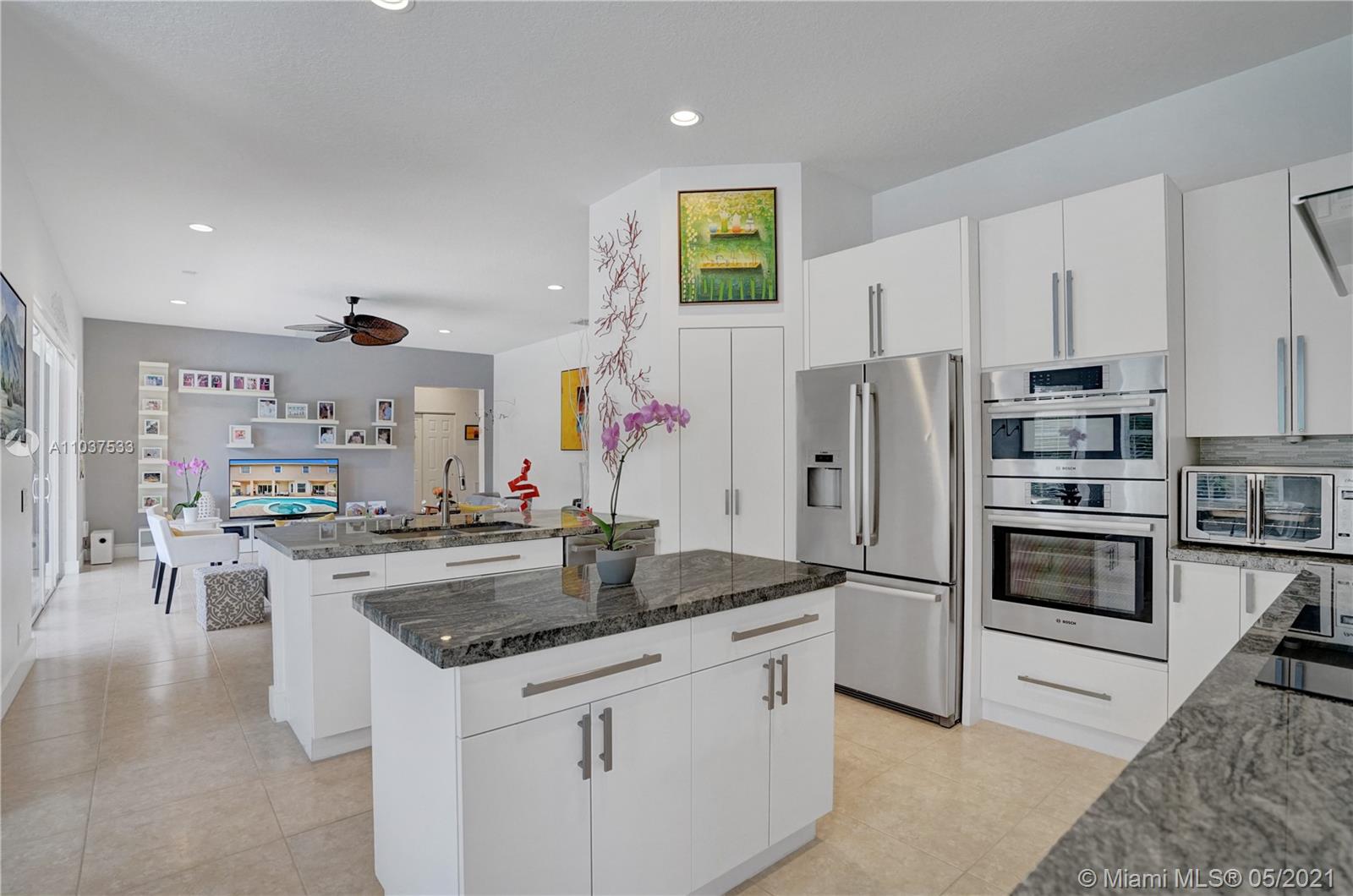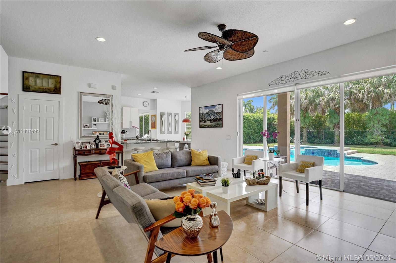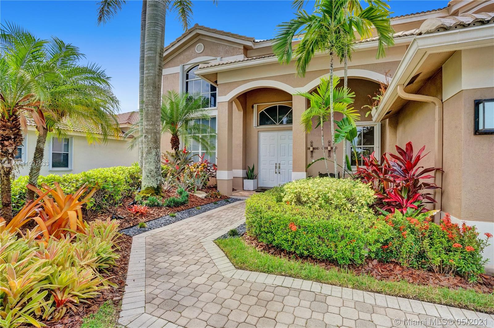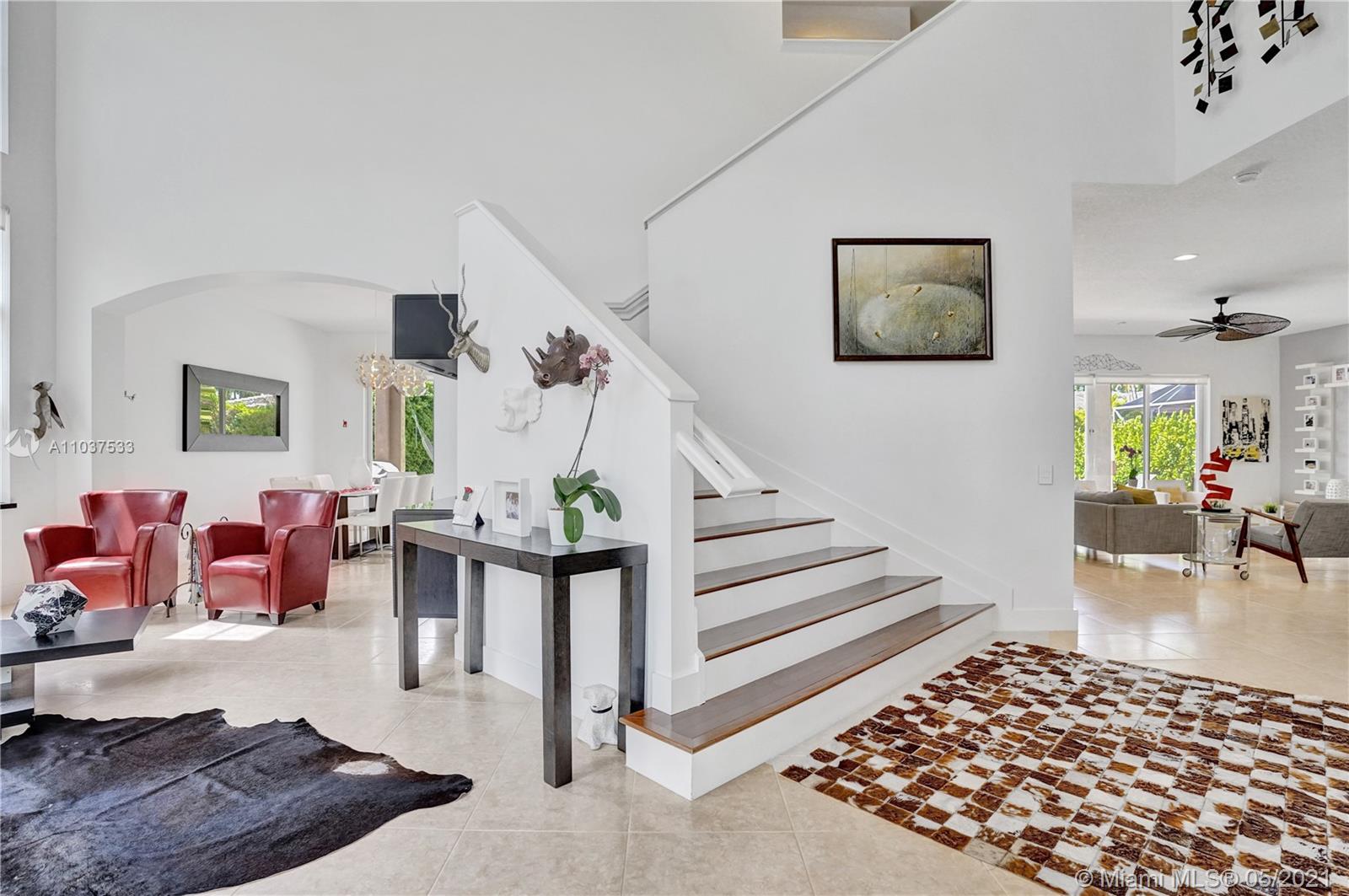 This Immaculate Two-Story modern contemporary home is perfectly set on an 11,204 SF lot. Situated in the prestigious "Victoria" at Weston Hills Country Club. Tastefully remodeled in 2016. Featuring 4BD/4BA/Den-Office/Maid-Bonus Room and 3-Car Garage. Spacious master suite located on the second floor with a walk-in closet and sitting area. Kitchen features a stacked-glass backsplash, SS appliances, granite countertop with a breakfast area that looks out to a retreat-style backyard, and an inviting pool. All bathrooms feature new tiles, glass shower doors, and new vanities. The double-height entryway, well-proportioned 3,979 SF living space and natural light makes this home unique. Other features include central Vacuum, custom window treatments, outdoor automation lighting, closet/cabinetry.