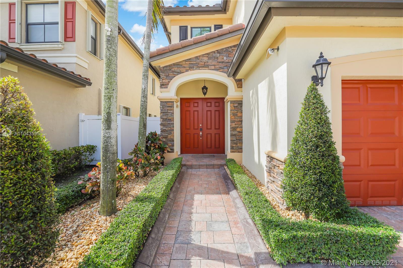 Beautiful 3/2 ½ two-car garage home in the beautiful private community of Aragon by Lennar. This spacious home features marble countertops and S/S appliances with porcelain tile throughout the first floor and in the ½ a bath. Upgraded wood floors throughout the second level. This elegant home boasts a cozy fenced yard with many upgrades including a paved deck with two Gazeboes with a full bar to entertain your family and friends. Plenty of privacy for the whole family with no rear neighbors which has a perfect view of the lake’s fountain. A peaceful gated community with many amenities including security, clubhouse with pool kid’s playground, a 1-acre park, and an 8-acre lake. Conveniently located w/ easy access to two highways, shopping, dining & entertainment.