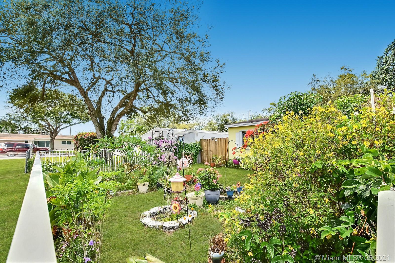 ABSOLUTELY CHARMING 3 BEDROOM 2 BATHROOM HOME EXUDES CURB APPEAL. A WELCOMING FRONT ENTRY IS LINED BY A SPECTACULAR FENCED GARDEN OF COLORFUL FLOWERS AND MATURE TREES. LIGHT AND BRIGHT INTERIOR OFFERS TILE THROUGHOUT AND NEUTRAL DECOR. KITCHEN FEATURES STYLISH WHITE CABINETS, GRANITE COUNTERS, AND STAINLESS STEEL APPLIANCES.THE LARGE FULLY FENCED YARD IS PERFECT FOR ENTERTAINING AND ALLOWS ROOM FOR A POOL. FOR CONVENIENCE THE HOME ALSO FEATURES A CARPORT FOR PARKING AND A DEDICATED LAUNDRY ROOM. THE SPACIOUS PRIMARY SUITE HAS AN ENSUITE BATH AND A PRIVATE ENTRY. FANTASTIC CENTRAL LOCATION IS MINUTES FROM THE TURNPIKE, SHOPS, RESTAURANTS AND THE HARD ROCK HOTEL.