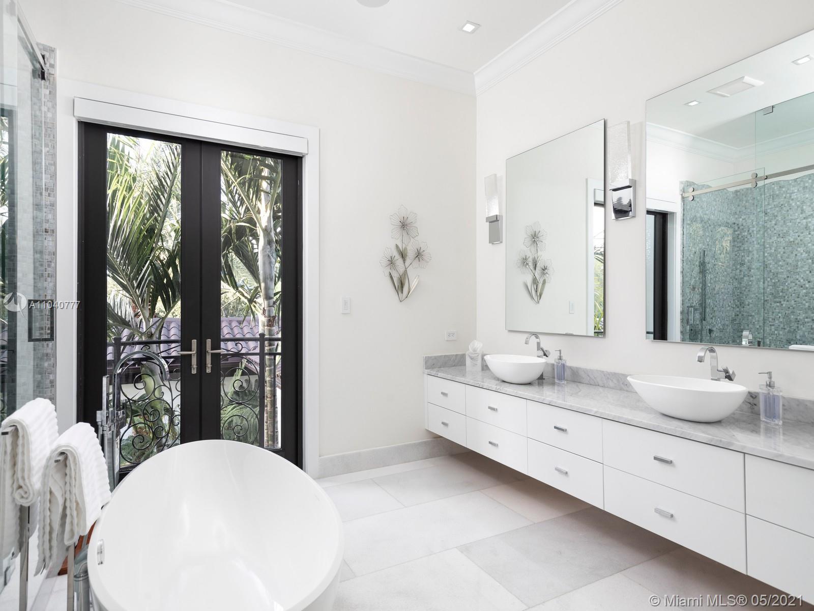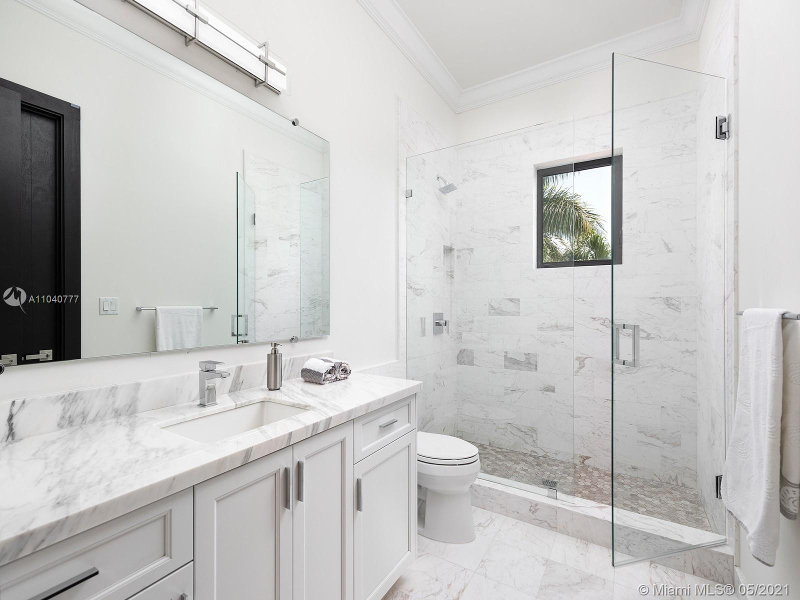 Located in the prestigious sought-after neighborhood of N. PINECREST this 6 Bed/8.5 BA “Transitional” 4-year new home on a 1.12 professionally landscaped acre boasts verdant views of the gardens w/ Majestic King Palms that grace the resort style dual swim-out heated saline pool w/ adjacent outdoor shower. Featuring a plethora of top-of-the-line features & finishes this Smart Home offers the Elan Home system which puts command of your house at your fingertips, the Jandy Pool/Spa automation system, organic mosquito repellent system, media room, playroom, gym, two offices, a guest suite w/liv. rm & private entrance, staff quarters, 500+ bottle wine cellar & butler’s pantry. A true spacious chef’s kitchen w/WOLF, Miele, stainless steel & glass Sub Zero refrigerator & 6 burner WOLF gas stove.