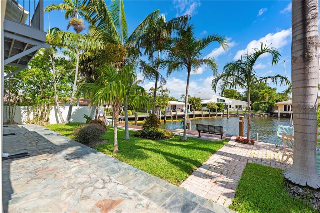 65' Seawall Accommodates 45' Boat on 145' Wide Canal. Caribbean Style Home with Recent Renovations. Approx. 11.5 Ft Ceiling Height First Level. Separate Entry Guest Suite off Staircase with Private Terrace. Quiet Neighborhood Connects 6 Blocks with Intracoastal Drive. Slate Floors in Living Areas. Charming Entry Courtyard w/Fountain & Outdoor Full Cabana Bath Master BR: Gas Fireplace, Wood Floors, Spa Tub, Two Closets, Terrace, Wood Shutters. Iron & Stone Staircase. Office/Gym/5th BR has No Bath but nearby access to Powder Rm. Great Rm: Stack stone Fireplace, Walls of Glass w/Transom Windows. Matterport Tour: https://my.matterport.com/show/?m=fe3MvwJE4uS