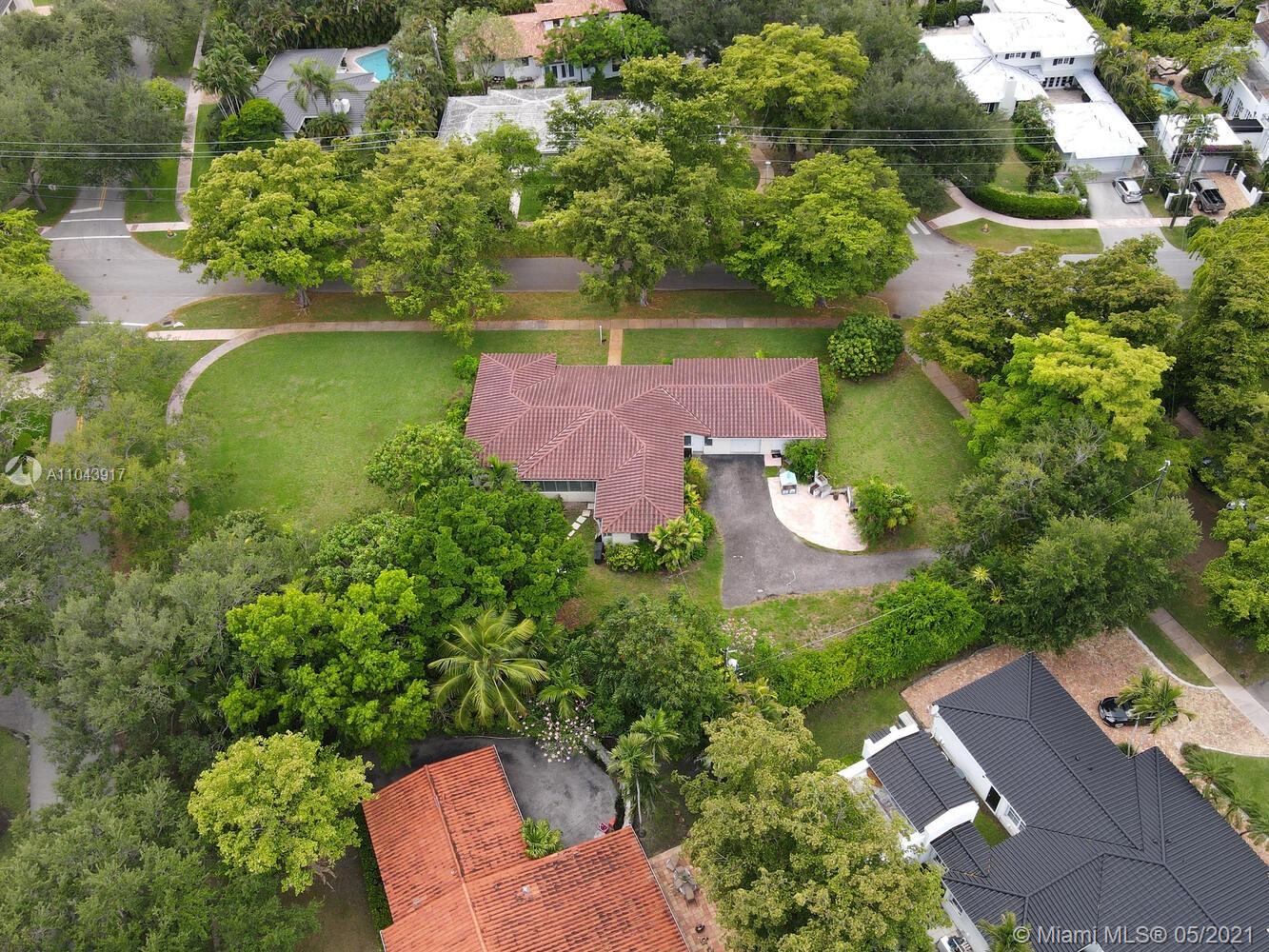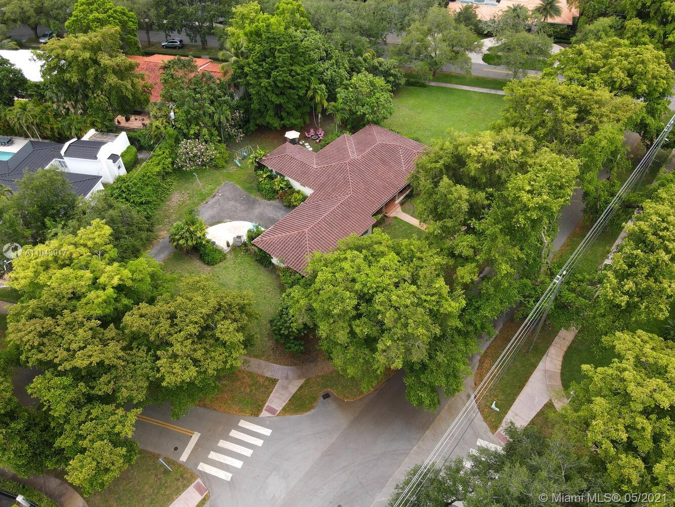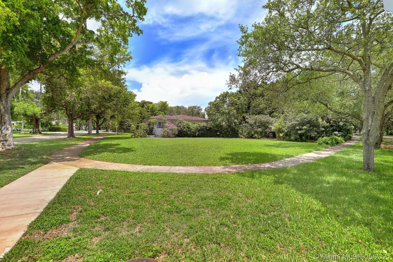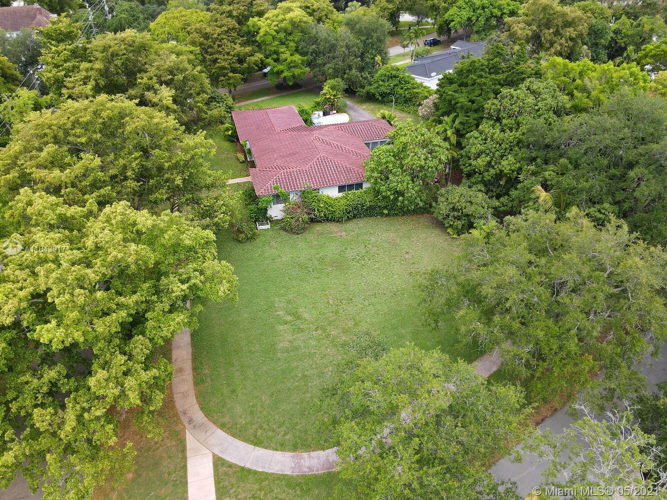 Rare opportunity to build a new construction home on an idyllic 25,000 SF lot in a quiet, tree-canopied South Gables neighborhood. The existing home has 3 BR / 2 BA + a separate 1 BR / 1 BA in-law’s quarters with private entrance. (Potential to rent the home during the permitting process). Mature oaks, black olive, palms, lychee, avocado, sapodilla, carambola, mango, frangipani and other trees surround the perimeter of this lush, park-like property. Complete set of architectural plans by world renowned architect, Jorge L. Hernandez are available. Close to Miami’s most prestigious schools and to shopping & dining in downtown Coral Gables, South Miami and Coconut Grove.