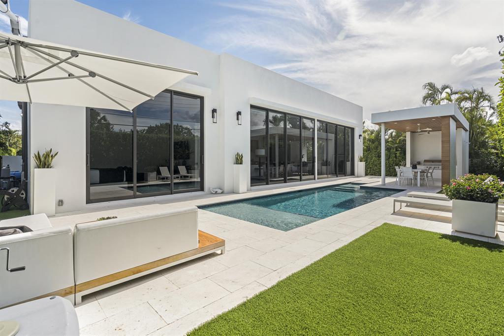 Designed with a modern resort lifestyle in mind, 811 Granada is meticulously crafted with architecture by Richard Jones. Built in 2020, this 3 bedroom 3 1/2 bath features open concept living with 12 ft ceilings, gas fireplace, all surrounded by an 11 ft tall wall of glass. The chef's kitchen boasts custom cabinets and imported porcelain countertops with top of line appliances from Viking, Wolf and Sub-Zero. Outdoor entertaining is enjoyed at the custom pool and summer kitchen pavilion w/ separate cabana bath and shower. Less than a two block walk to the beach, and a short bike ride to Mizner Park, Downtown Boca, and The Boca Raton Resort. Other amenities include; fully automated home via Control4, Generac home 22kw generator, butlers pantry, wine fridge.