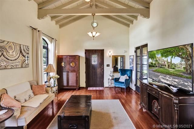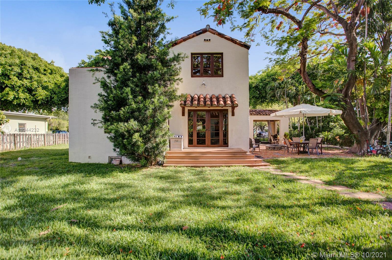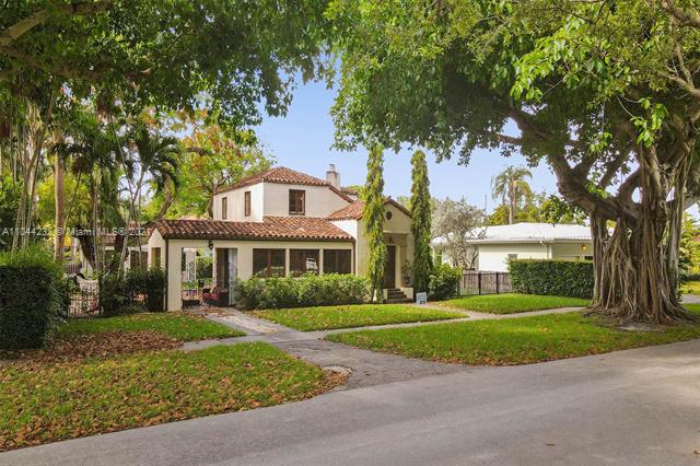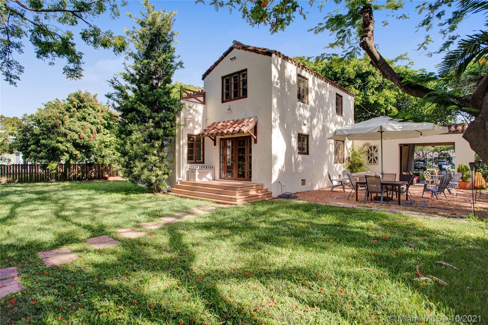 Stunning Mediterranean Revival, Historic Landmark home is located on a coveted street across from Constitution Park, steps from Miami Shores recreation center. 2359 SF, 2-story main home consists of 3 bedrooms, 2 bathrooms, on oversized 13,000 SF lot. Renovated kitchen & combined dining area is perfect for entertaining. AGA range features double convection oven, a chef’s dream. Fully permitted detached cottage, 638 SF, completely renovated 2010 comes equipped w/kitchenette, full bath, bedroom, living room & central A/C. Mature royal Poinciana, gumbo limbo, lychee, & starfruit trees gracefully line the property. Covered carport w\direct entry to the home can be used for weatherproof entertaining. New HVAC, new washer/dryer, new septic tank & drain field. Room for a pool. NOT in flood zone