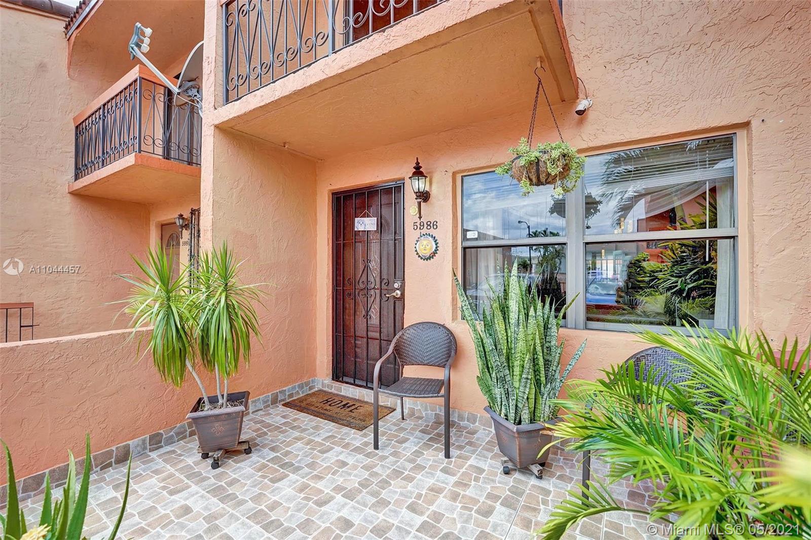 Welcome to this gorgeous townhouse with lots of upgrades. Updated kitchen with granite counter-top and wood cabinets, All SS appliances throughout, Samsung stainless steel washer and dryer, front porch with iron fenced door and sitting area. Enclosed patio features an outdoor cooking section and entertainment area. Trane A/C unit, tankless water tank 2nd floor features two large bedrooms, master with walk-in closet, a balcony overlooking the patio area. Two Assigned parking space, gated community and so much more! A Must See..