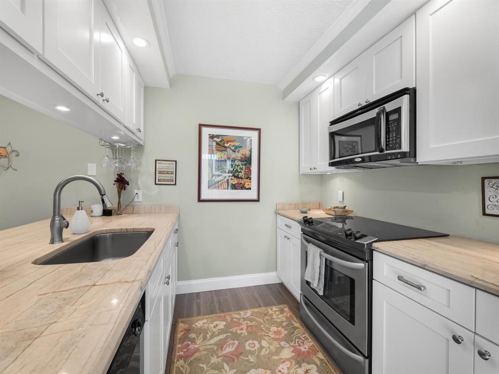 Beautifully remodeled (2015) 2 Bedrooms, 2.5 Baths TH located in a nice area. Kitchen remodeled in 2015 with new white shaker cabinets, stainless appliances and quartzite countertops. Wood look tile in downstairs, newer carpet upstairs. Handmade bathroom cabinetry with quartzite counters upstairs, new fans, and full size washer and dryer. Large under stairs storage area. A/C (2005), Water heater (2014), Accordion Shutters, HOA takes care of roof (2016) and fences. Furniture Negotiable. Close to everything, restaurants, shopping, 1-95, minutes from Palm Beach Outlets, and Airport. Sandalwood Lakes offer great amenities including 3 pools, tennis, basketball, volleyball, playground, picnic area, and water is included in the HOA. Assigned parking #7 and #9. See HOA info in Documents Tab