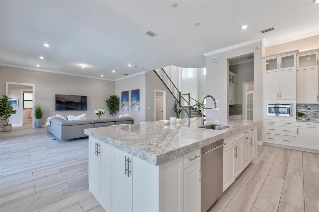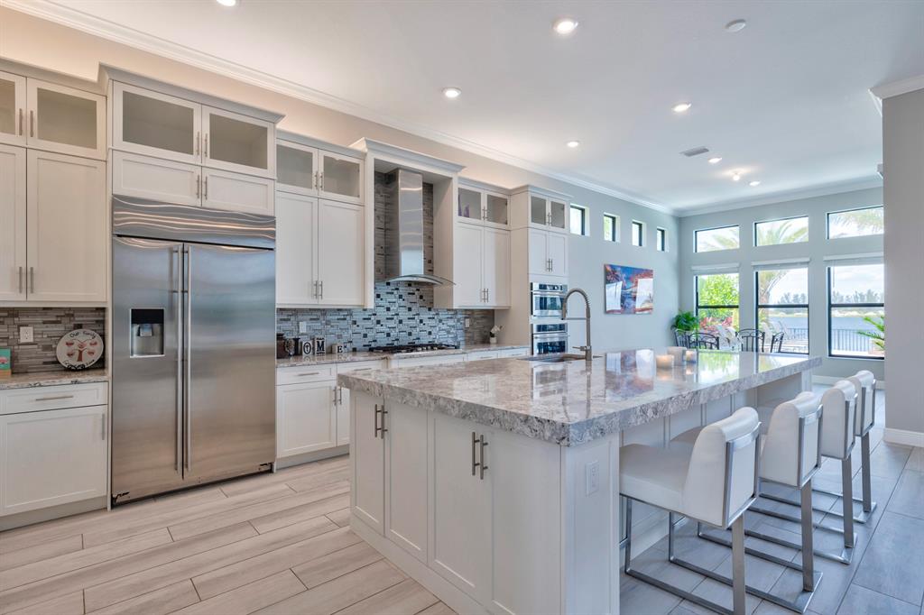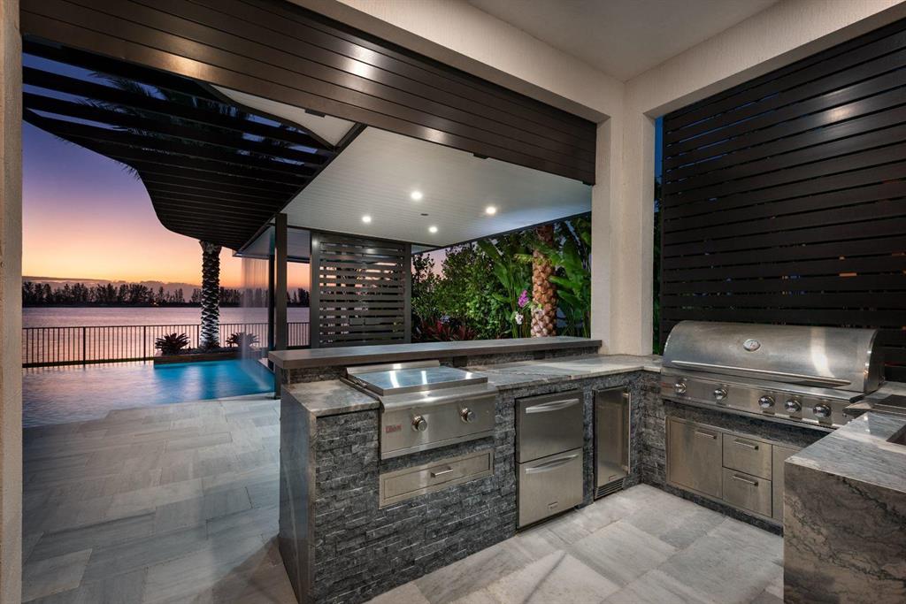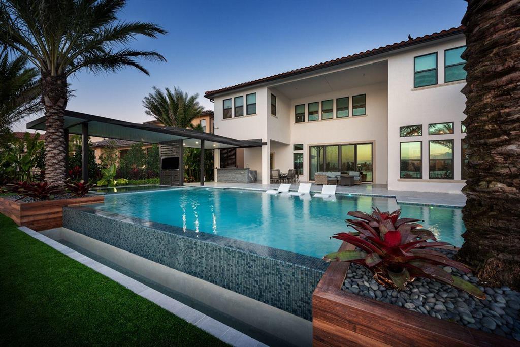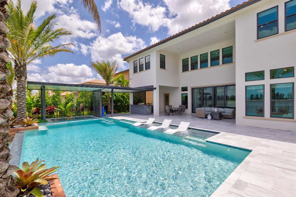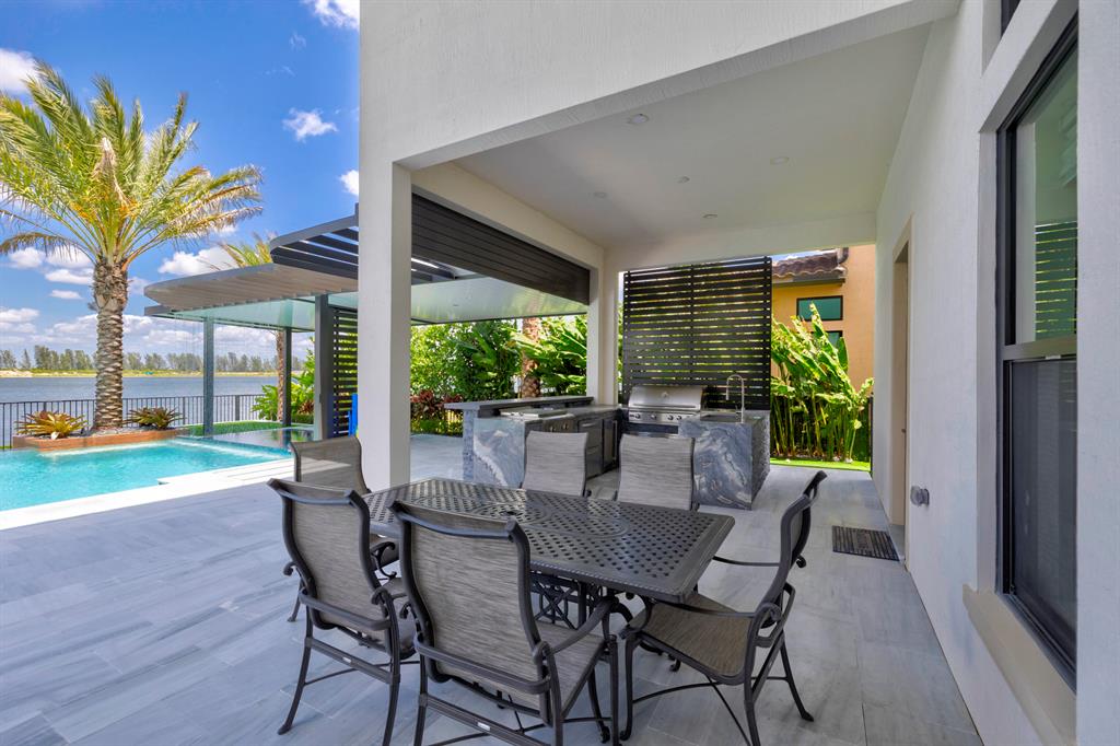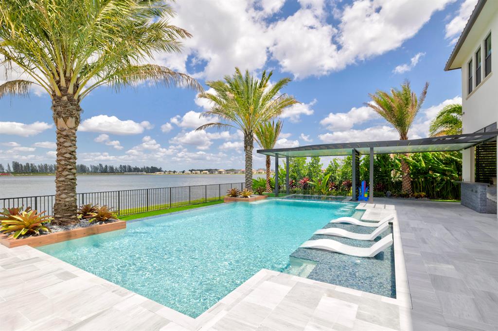 New estate home without the wait! Breathtaking lake front views, elegantly upgraded, BRAND NEW (2020) VOYAGER model custom home. OVER $400k in builder and after-market upgrades. This residence of 5 bedrooms + loft, 5.1 bathrooms and 3 car garage offers plenty of space for entertaining in luxury. Built for outdoor entertainment! The lakefront home features custom outdoor lighting, a Harmon Kardon/Sonos sound system, fenced in turf yard with large infinity saltwater pool with a fully tiled hot tub, upgraded white marble stone patio, luscious landscaping, and a magnificent pergola with waterfall feature. A chef's dream outdoor kitchen including built-in BBQ, hibachi grill, fridge, icemaker & sink. This home also features a custom mosquito system & whole home generator.
