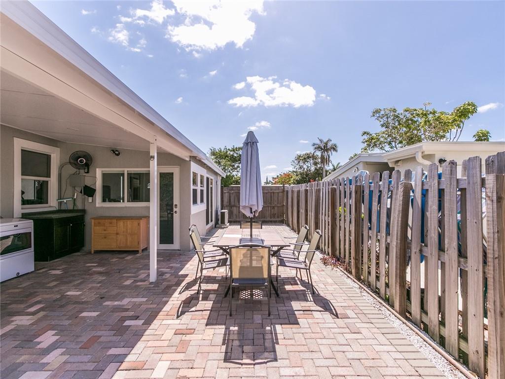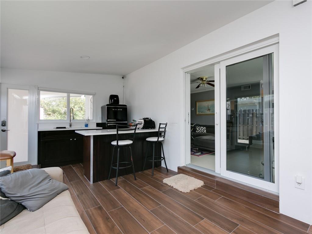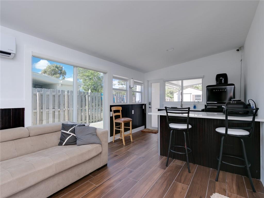 Nice Home Not a Drive By. Can be income producer with the current 1-1 studio Apartment currently rented low at ($700). or easily converted back to 3rd bedrooms with bath. The main house boasts 2 bedrooms and a bath with Newer floors, bathrooms, kitchen all tastefully done. Then there is the outside kitchen den totally enclosed with AC, or open the impact sliding doors and windows and make it an outside dining area with the covered back porch. Very Private fenced back yard. .All Impact windows and doors. front drive with guest parking. Paved area behind fence for a Boat if desired and still has room for a pool. Walk to the Park. Close to Shopping, Transportation, Beach. Conventional Finance Buyers, Please Ask your lender for a DU ( Desktop Underwriter) Approval for strongest consideration.
