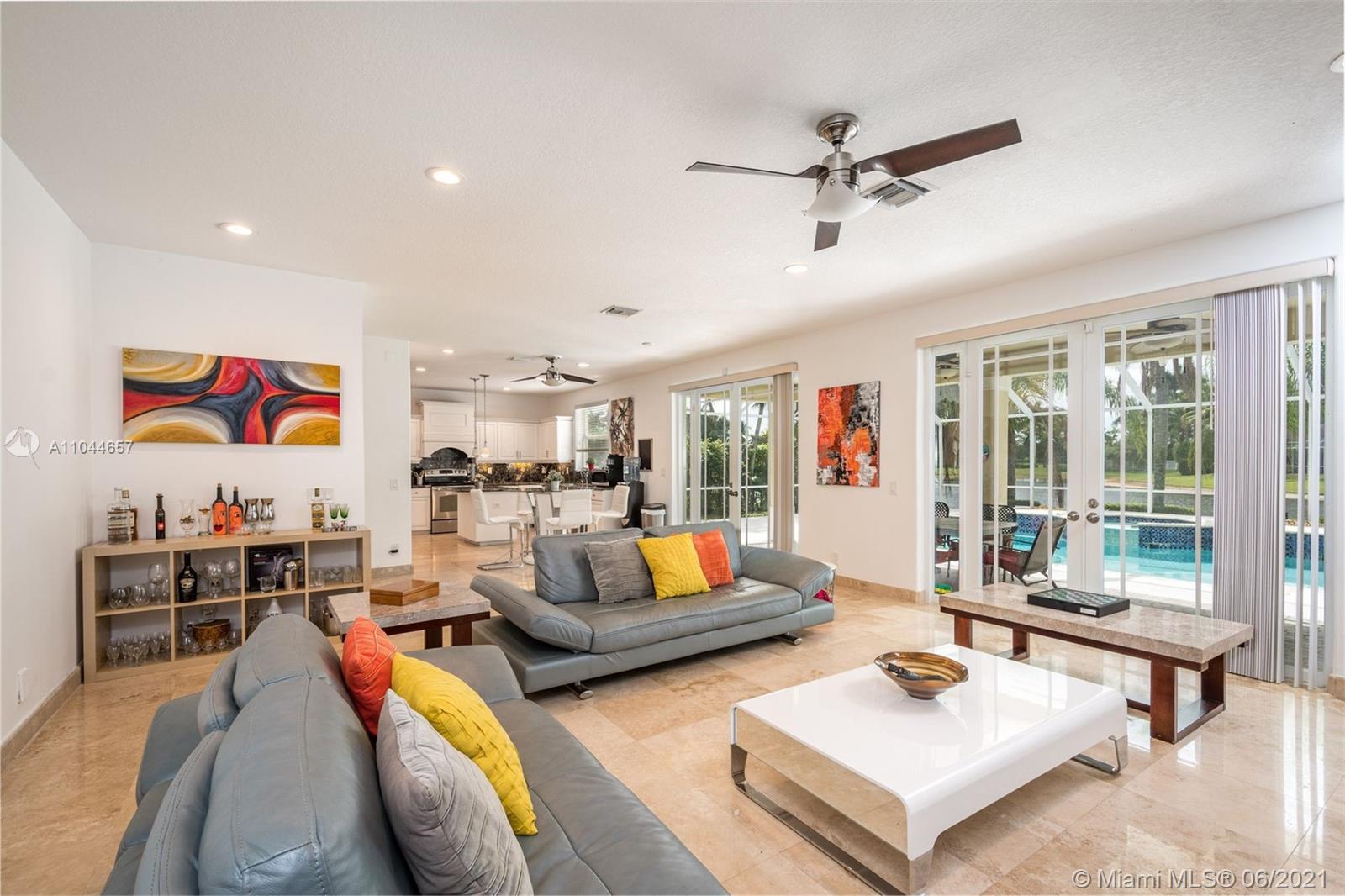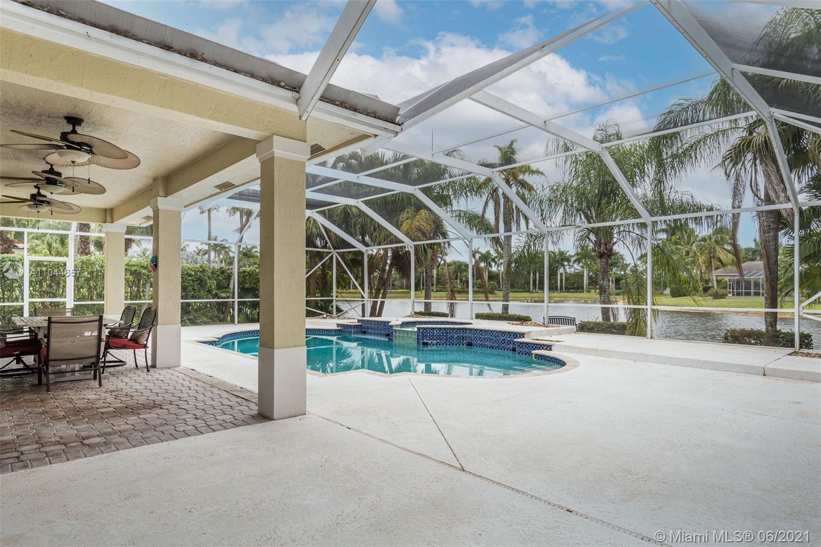 LAKE VIEW Stunning Two-Story Home w/ 4 Bedrooms + DEN and 5 Bathrooms located in the Prestiges Gated Community of Weston Hills. This Home Features high ceilings, spacious living, dining, and family room with lots of natural light. HIGH IMPACT WINDOWS. Marble floors throughout the first floor and tile on the second floor. The Second floor was remodeled in 2016. Kitchen w/ wood cabinets, granite countertops, and stainless steel appliances. Oversized master suite w/ seating area and office space. Screened Patio w/ swimming pool and jacuzzi. Two A/C 's. 3 Car garage with tile floor.