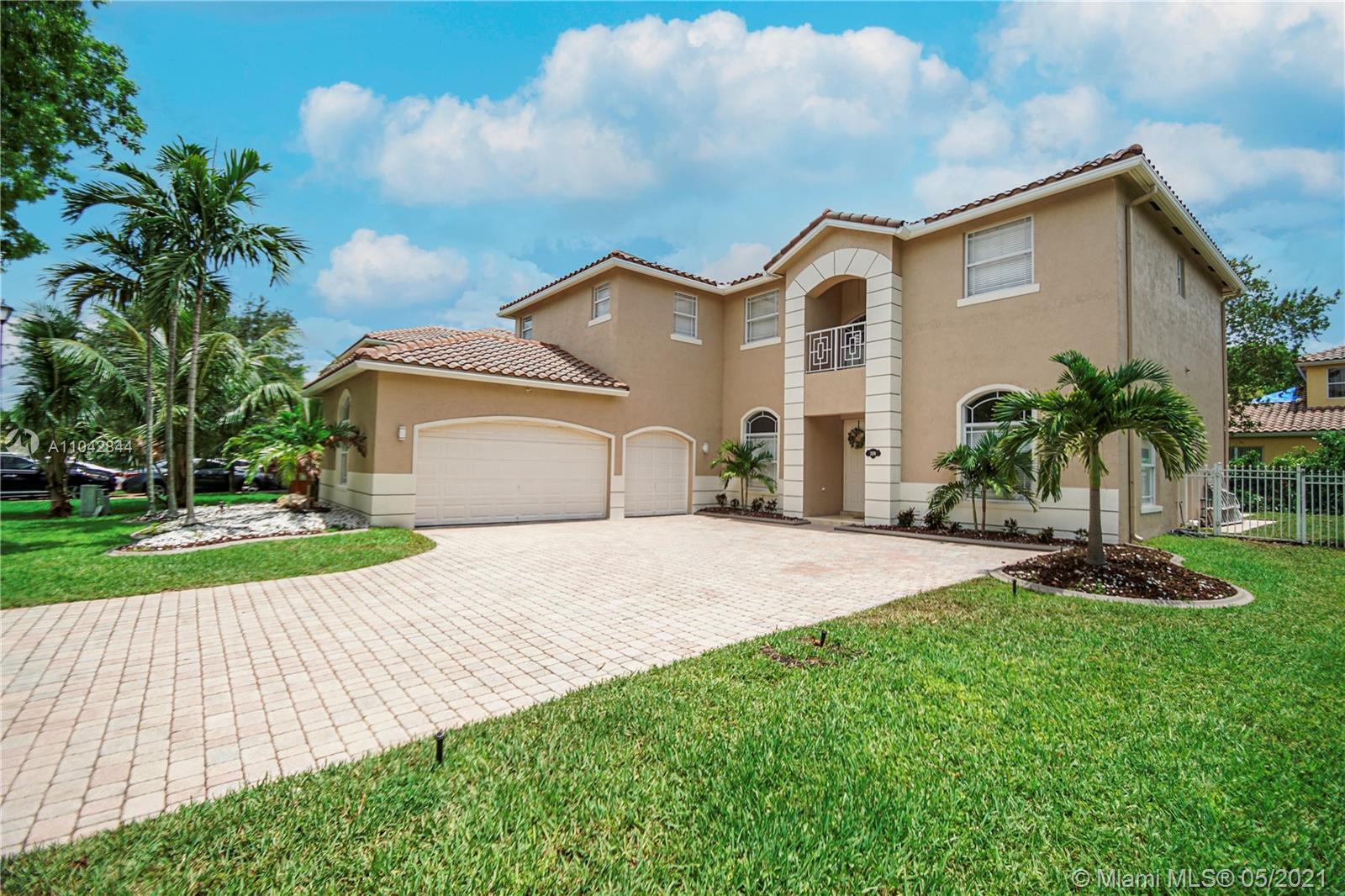 This one-of-a-kind renovated home has 5 bedrooms,4 full baths,a 3-car garage, a private backyard, and a pool. Other features include marble and laminate floors; a contemporary kitchen with white quartz countertops and stainless steel appliances; a large and open layout that provides natural lighting throughout the home; spacious master suite with a balcony and two walk-in closets.The first story has one bedroom and a full bathroom; the second story has 4 bedrooms with a junior master suite and two additional bedrooms with a Jack & Jill bathroom. Two newly installed A/C units.A low monthly fee; gated community with 2 main entrances currently being renovated;a community pool and tennis court.Centrally located near Miramar Town Center, Pembroke Gardens, Pembroke Lakes Mall, and main highways.