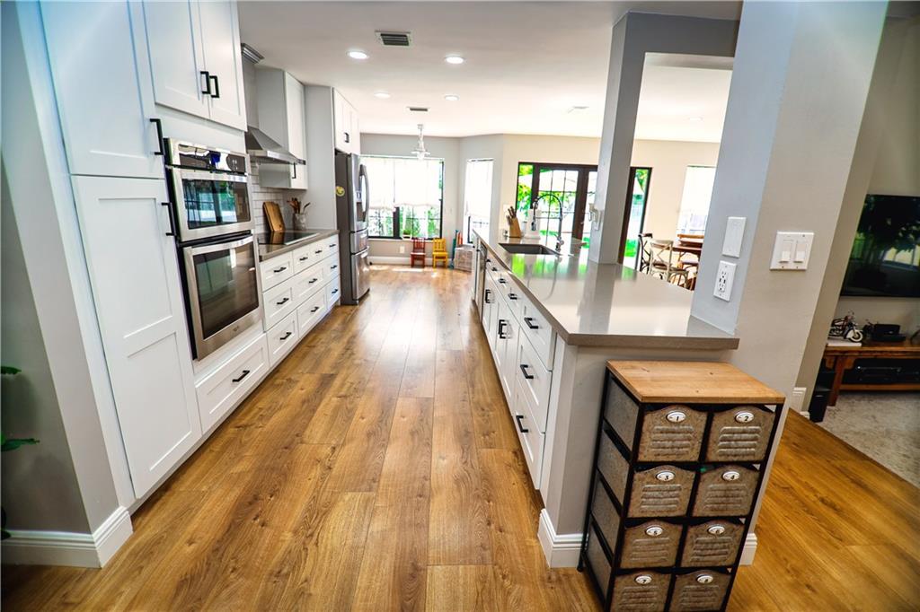 You will fall in love with this beautifully renovated single-family home in the gated community of Town Place Villas. A rare to find 3 car garage, two story house with open floor plan, that offers an abundance of natural light, skylights, soaring ceilings, floor to ceiling wood-burning fireplace. Renovated kitchen, bathrooms and high end (imported) waterproof laminate throughout the whole house, no carpet here! Full bedroom/bath on first floor. Tropical lushly landscaped and gated courtyard entry with brick paver walkway, which leads to the perfect outdoor living space for entertaining or even a pool. Enjoy easy access to all major roads, Town Center Mall, beach, and much more. A+ rated schools, including 2020 remodeled Verde Elementary. Showings will start on Sat 05/22.