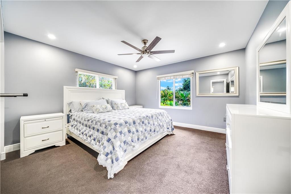 Located at the end of a culdesac in the heart of Ft. Lauderdale, this renovated single family two story home has so much to offer! Four large bedrooms and three renovated bathrooms, two living spaces, a formal dining room which sits 3500+ sq ft under air on a .94 acre lot! Features include: mid-century vaulted ceilings, hurricane impact windows & doors, four year old roof, high hat lighting throughout, two zone AC, touch screen blue tooth stainless steel Samsung appliances, cherry wood cabinets, marble backsplash, quartzite Counters, tile wood plank flooring, aluminum front gate with industrial motor, new sprinkler system, and private balcony. Property also features a secondary structure to be mother in law suite, pool home, or whatever you desire!